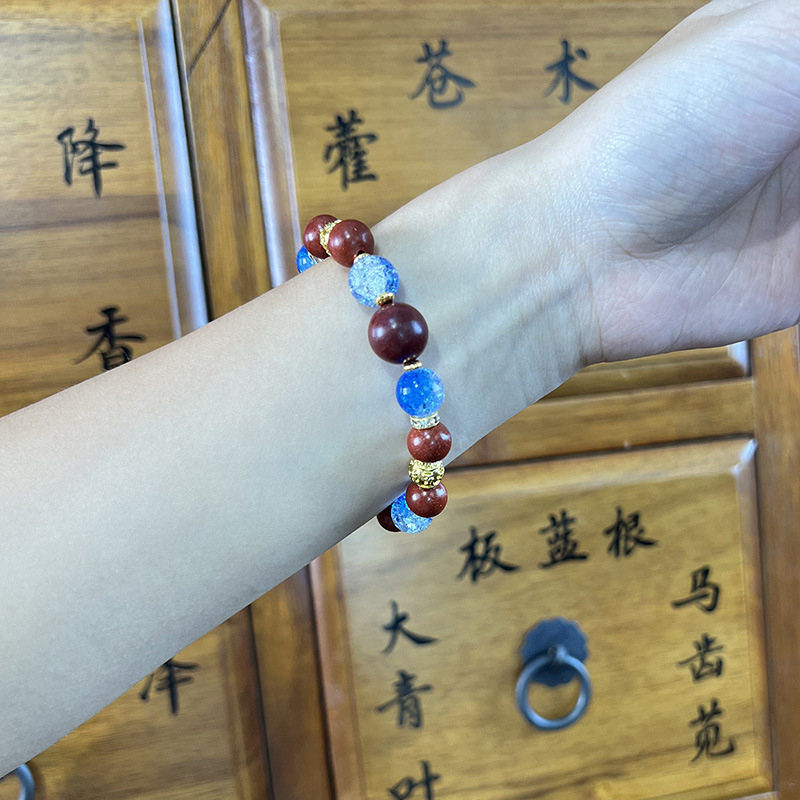 純天然手作りのお香ビーズ、漢方薬用ブレスレット、古代工芸、長持ちする薬用の香り、ブルークリスタルブレスレット、DIYオリジナル