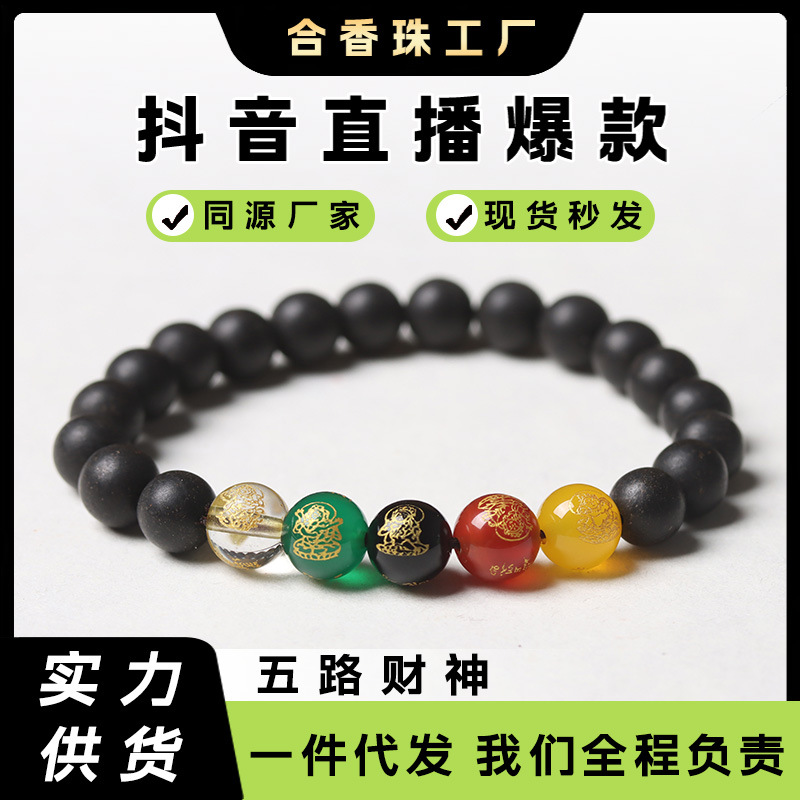 一件起批男文玩五路财神配饰女中药手串单圈千伶香天然合香珠手串