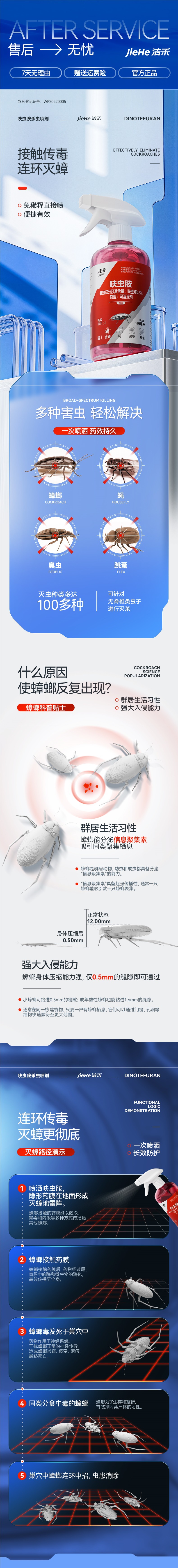 洁禾呋虫胺新型驱虫灭蟑喷雾灭蟑螂灭蚂蚁灭跳蚤灭臭虫家庭杀虫剂