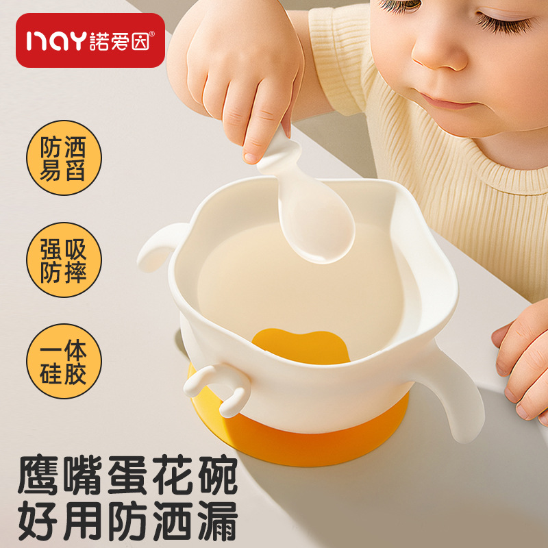 诺爱因婴儿辅食碗新生儿蛋花碗宝宝学吃饭防烫硅胶吸盘碗儿童餐具
