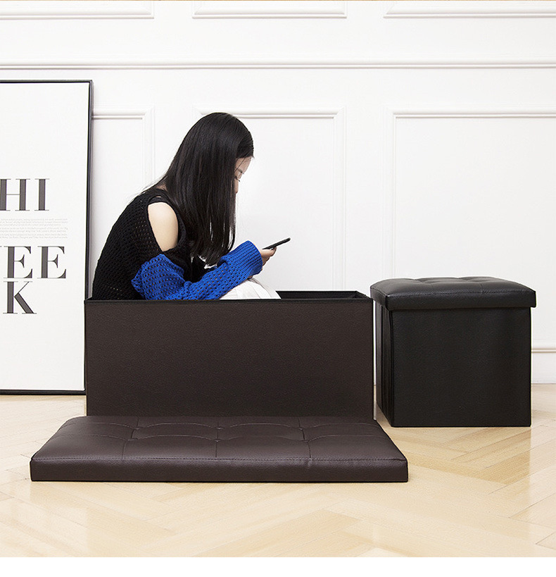 クロスボーダー卸売靴交換腰掛け革多機能折りたたみ収納ボックス大容量長方形収納腰掛け