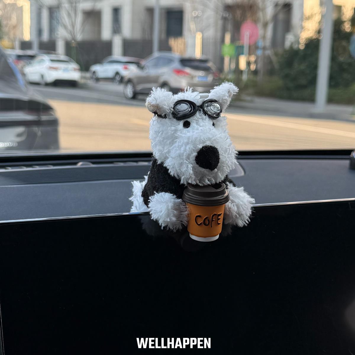 打工人咖啡西高地车载中控台装饰品屏幕趴趴摆件车内小狗饰品玩偶