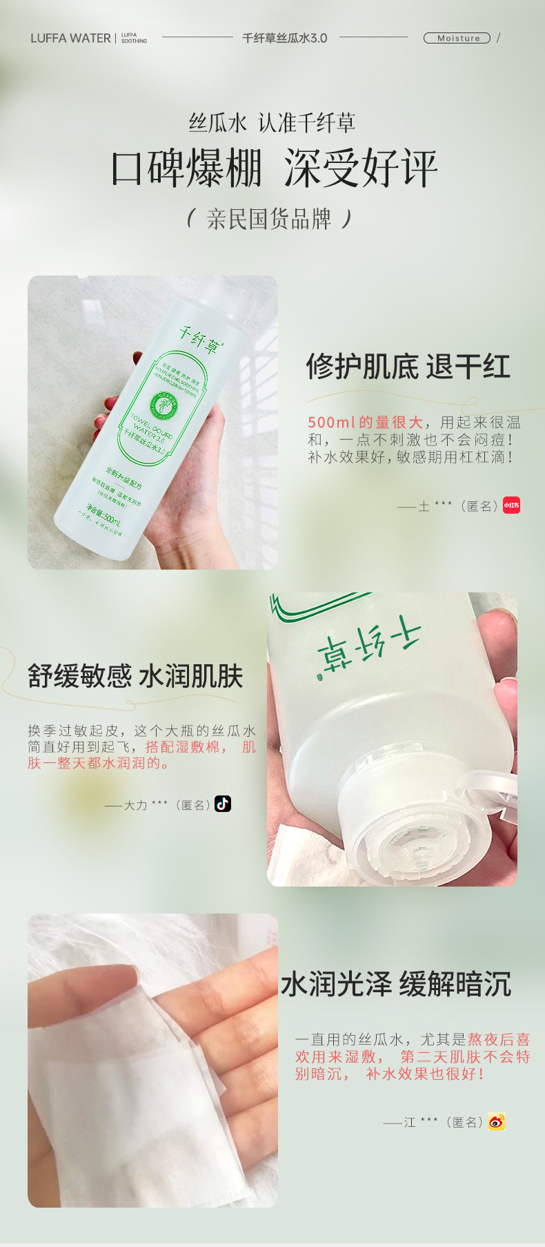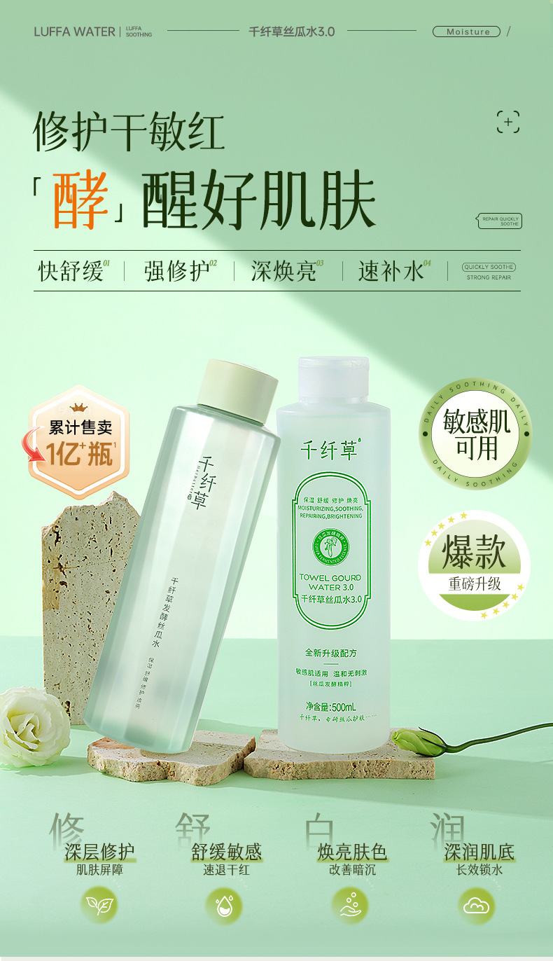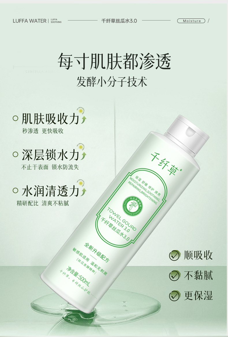 千纤草丝瓜水爽肤水发酵控油补水保湿化妆水芦荟湿敷补水喷雾
