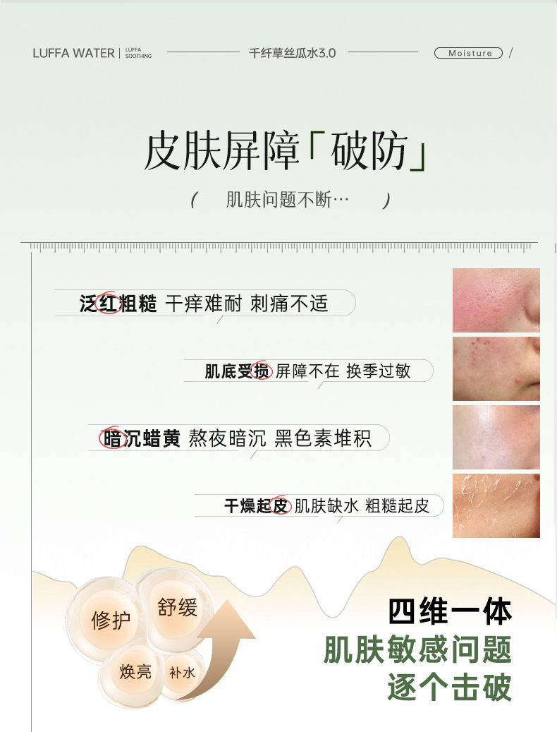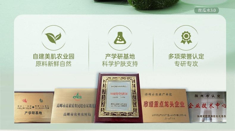 产品规格 丝瓜水(基础补水),玫瑰水(暗淡黄气)),芦荟水(维稳肌肤),黄瓜水(水油平衡),发酵丝瓜水(干皮敏感),发酵玫瑰水(肤色暗黄熬夜),发酵芦荟水(偏油皮 痘痘闭口),250ml丝瓜水