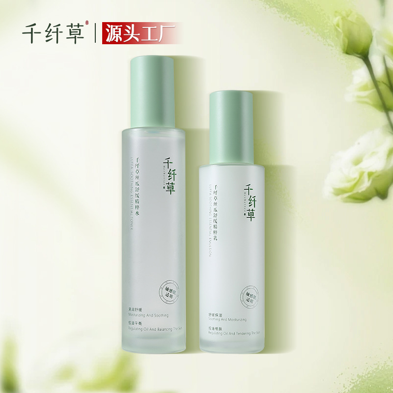 源头工厂千纤草舒缓精粹水乳套装保湿补水清爽面部护肤爽肤水批发