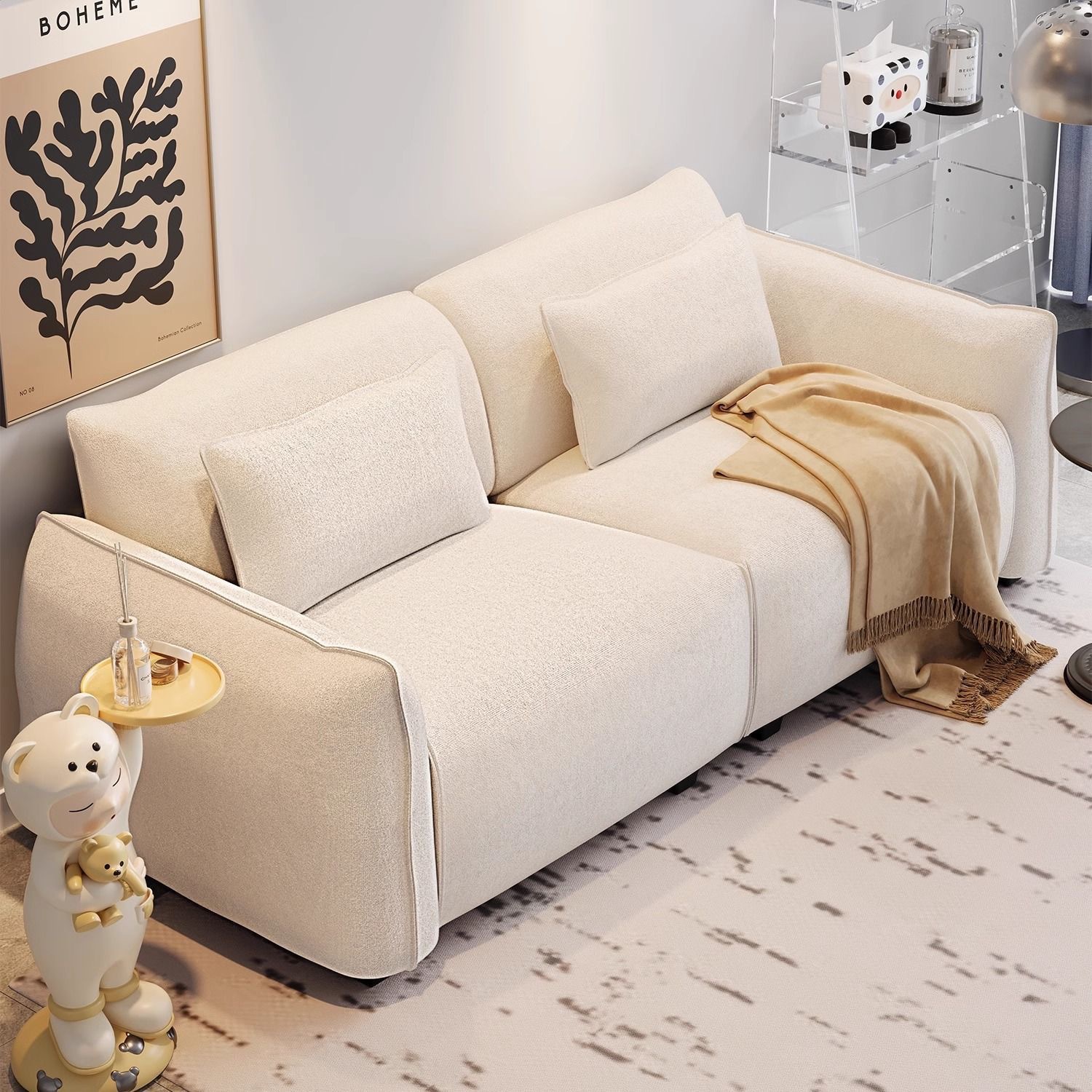 クリームスタイルのクラウドソファ取り外し可能で洗える新しいリビングルーム小さなアパートモダンなシンプルな豆腐ブロックストレートローファブリックソファ