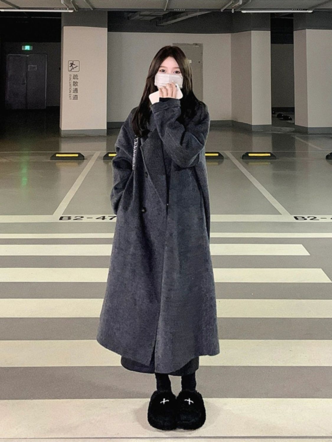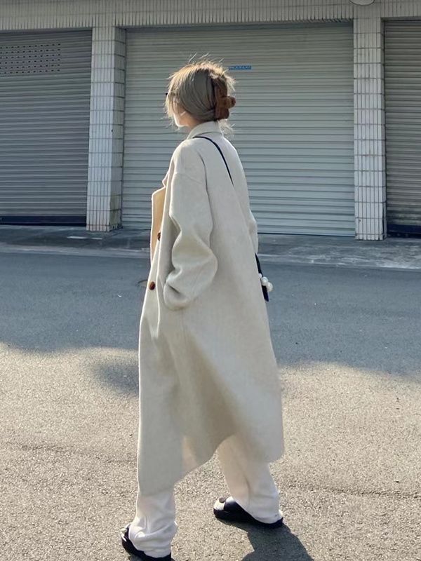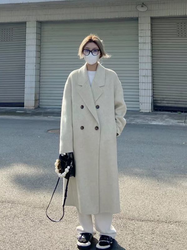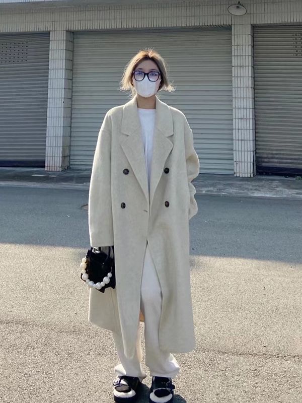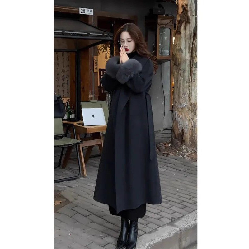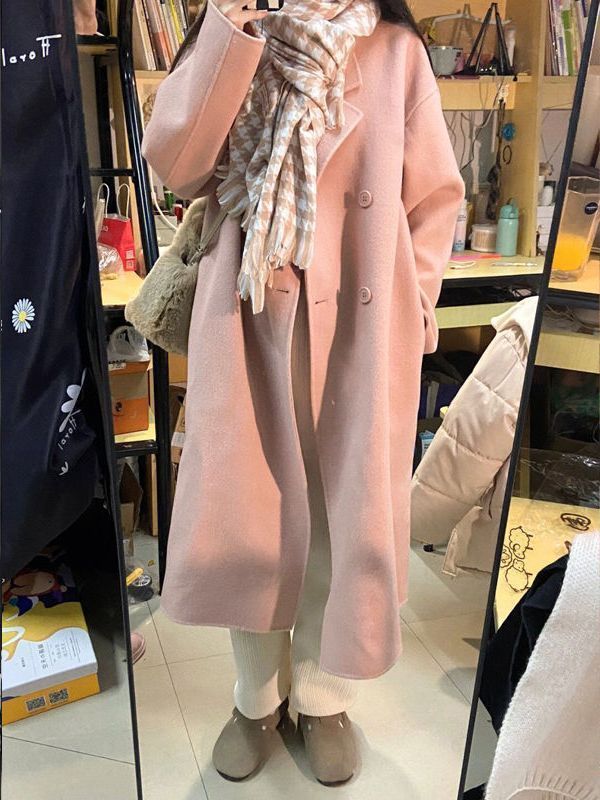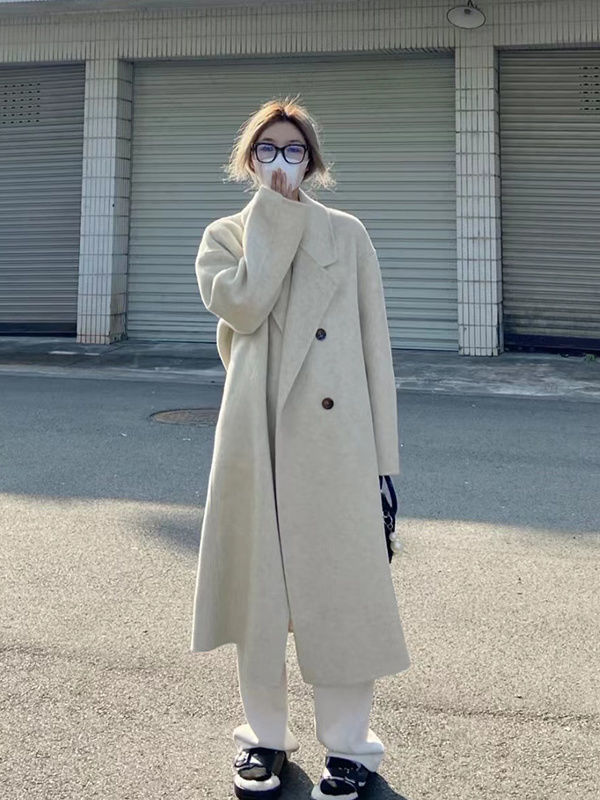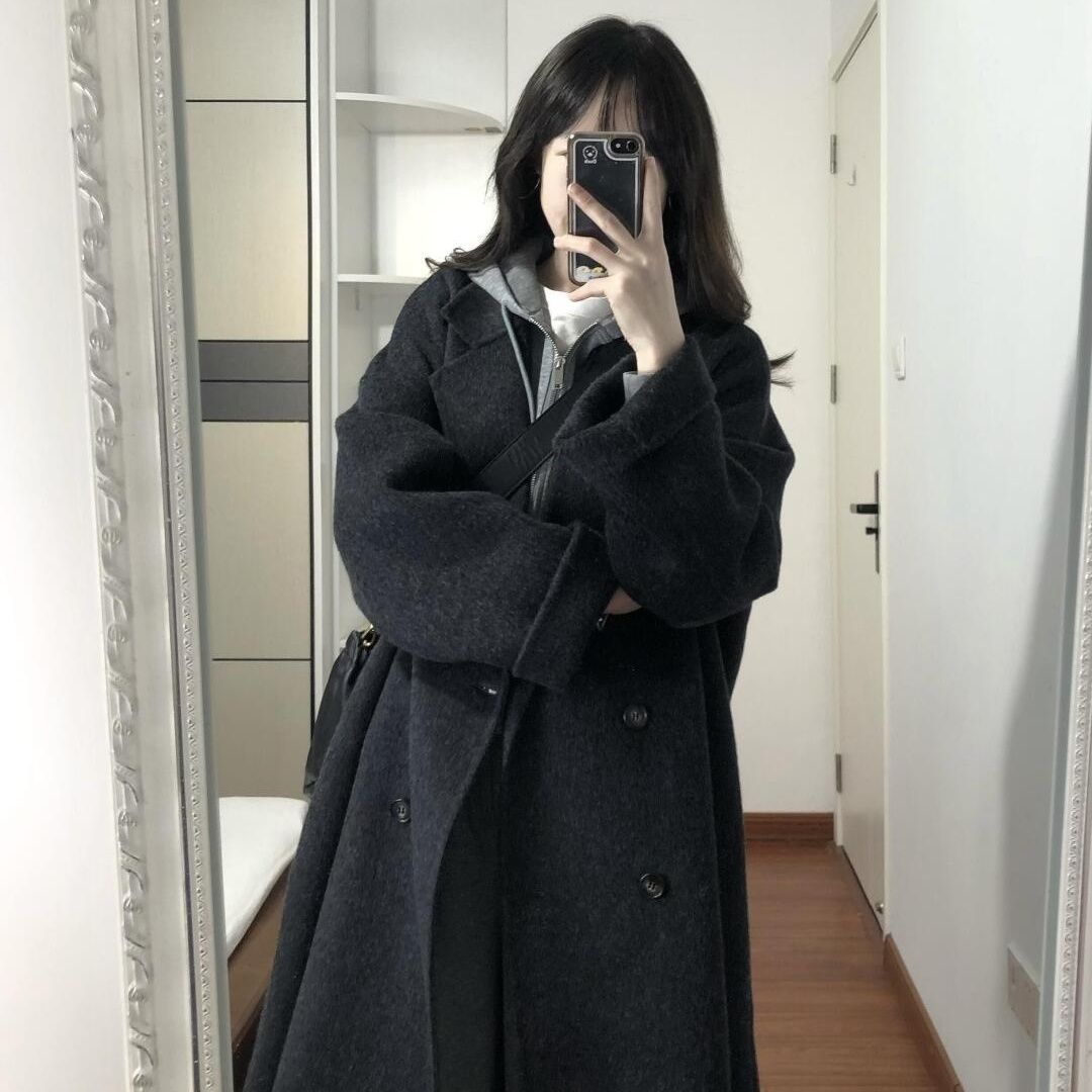 2025 秋冬新作両面ウールコートレディースロングカシミヤ韓国風ルーズウールコート気質痩身女性