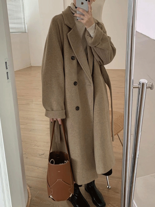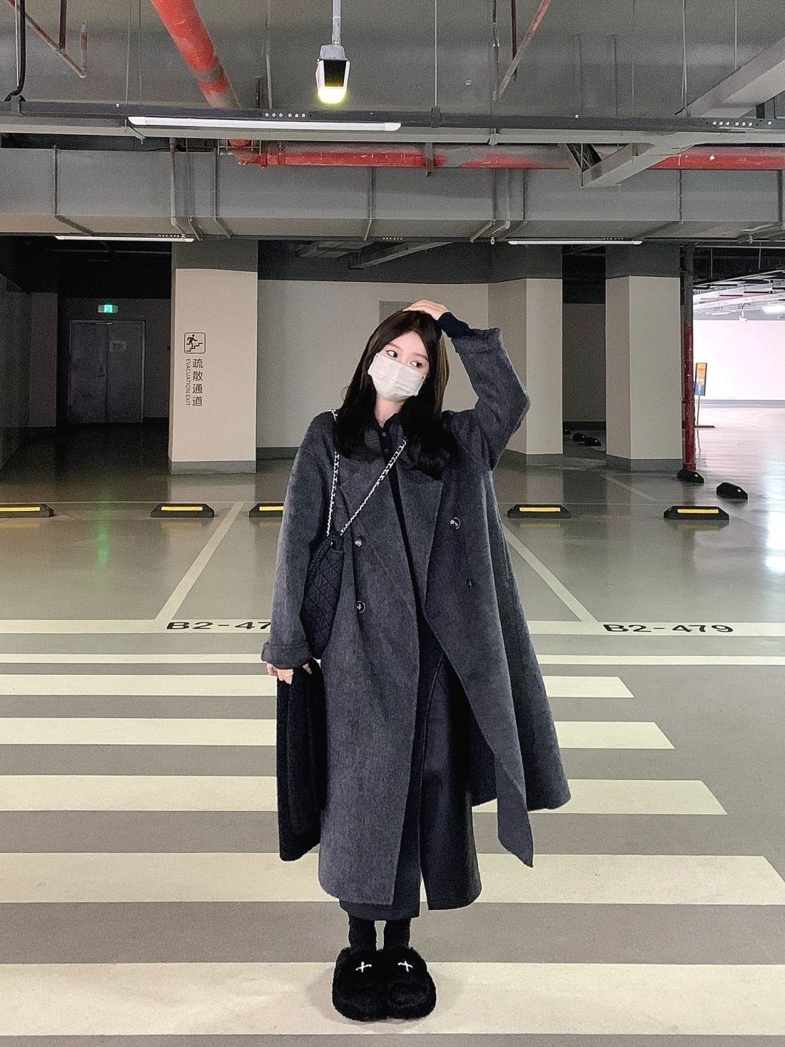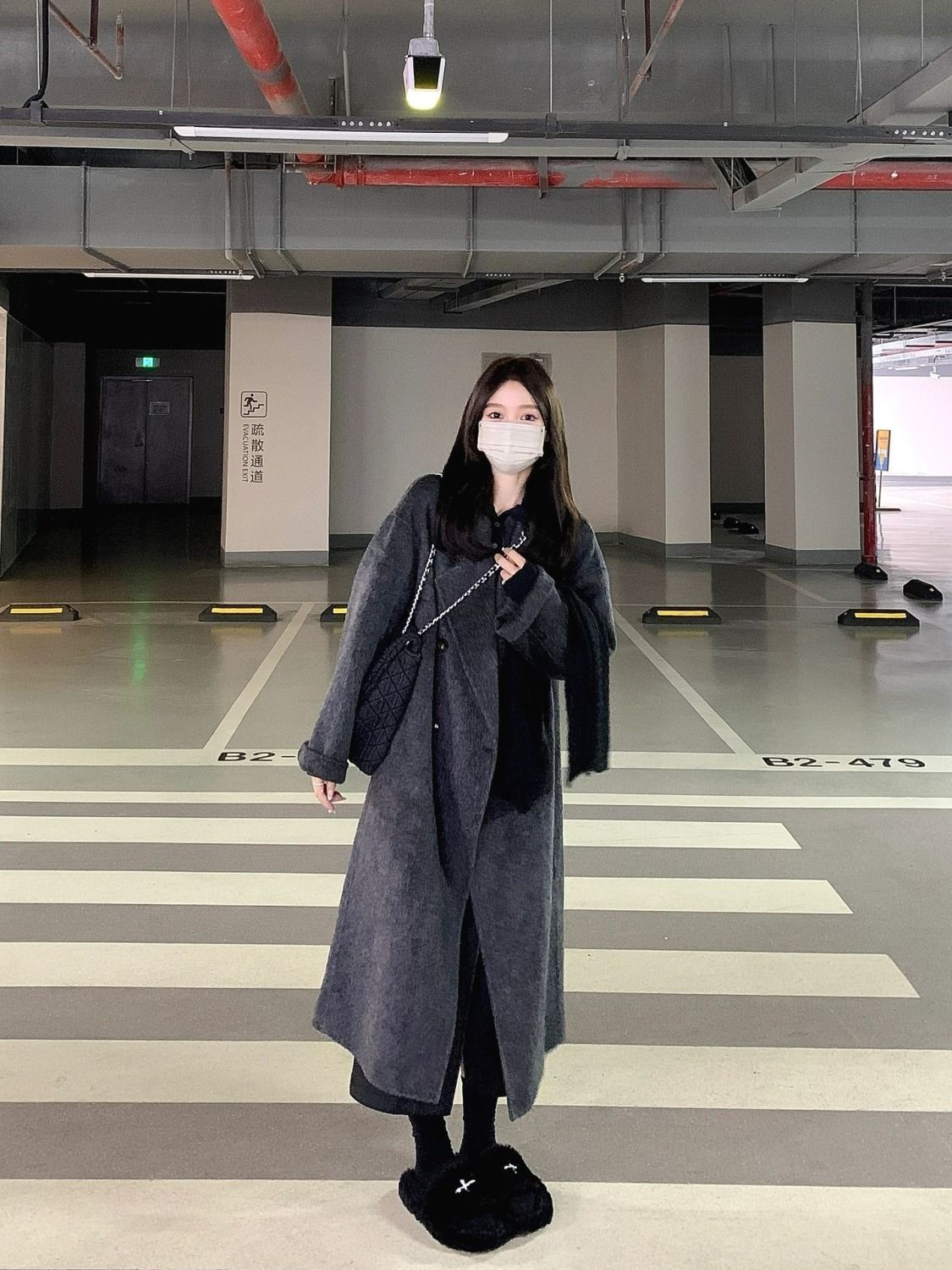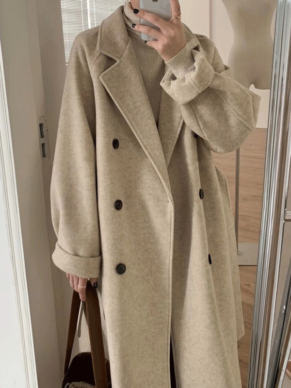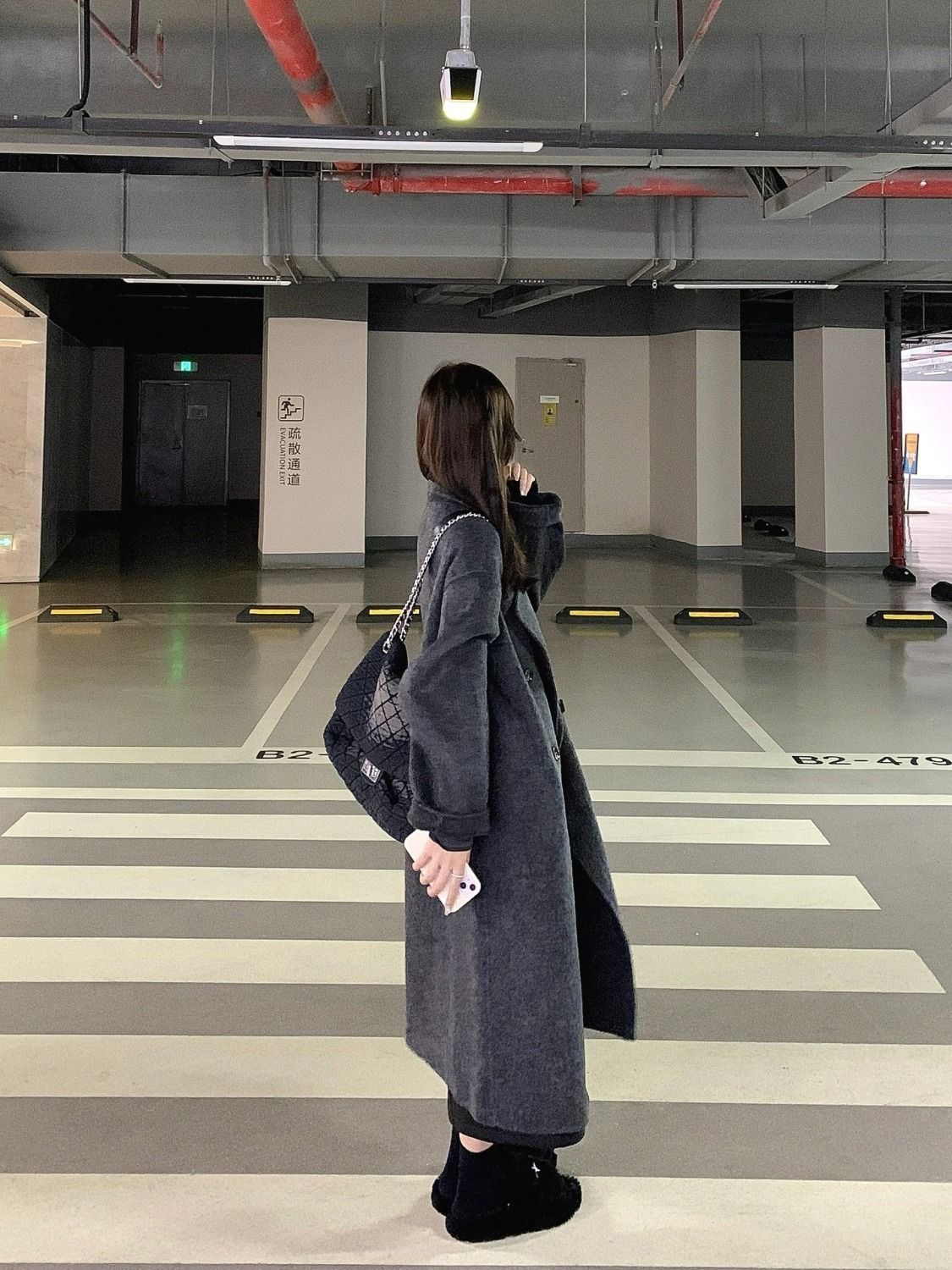 2025 秋冬新作両面ウールコートレディースロングカシミヤ韓国風ルーズウールコート気質痩身女性