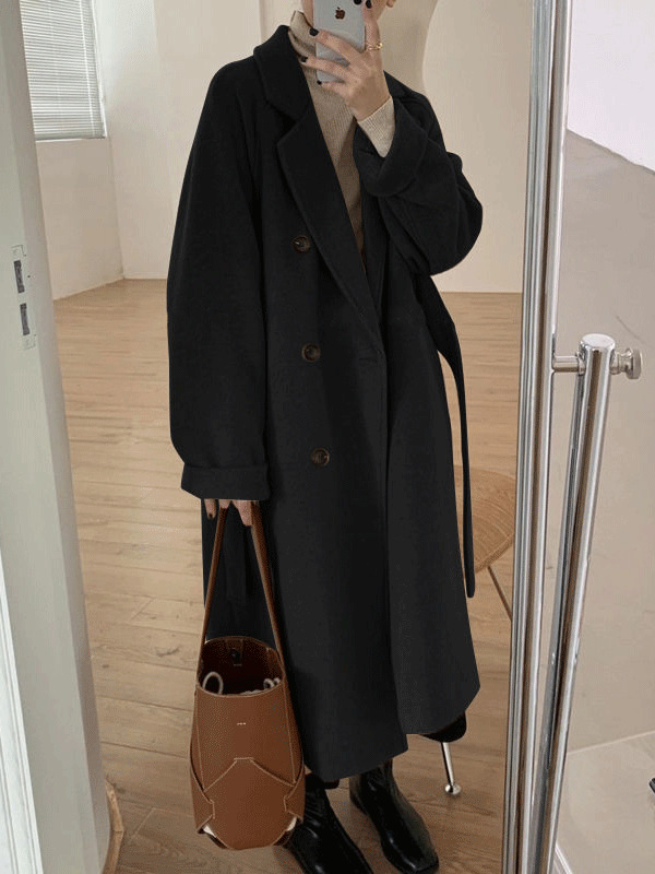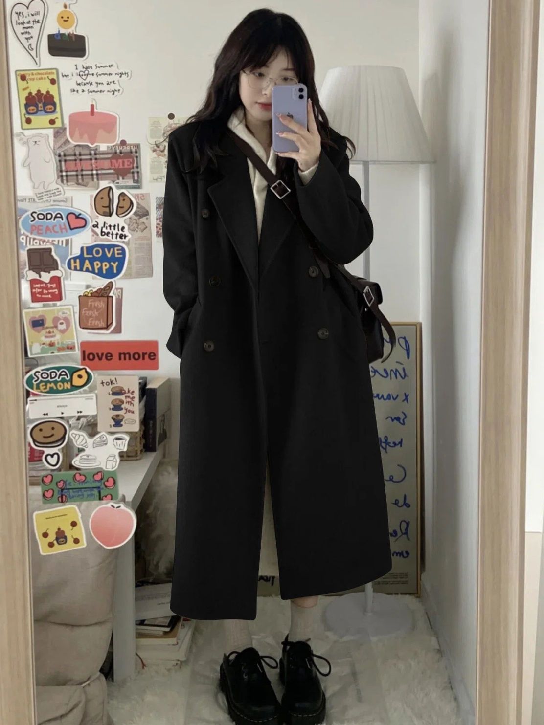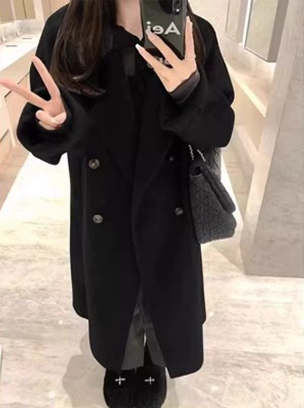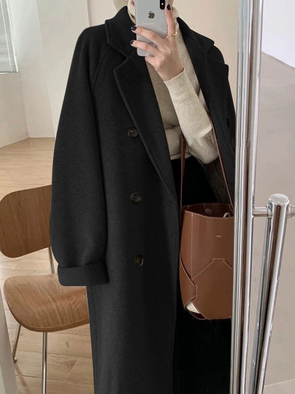 女性のためのシンプルな黒のウールコート 2025 秋と冬の新しいハイエンド韓国ヘボンスタイルウールコートトレンディ