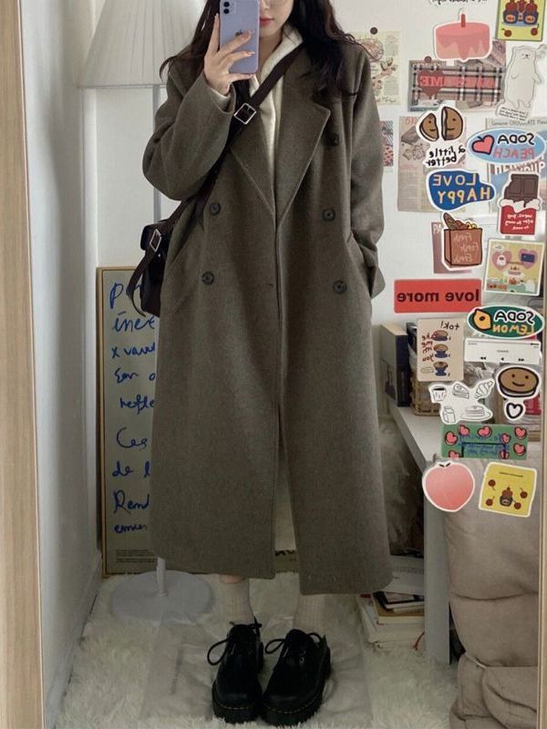 ウールコート女性のための 2025 秋と冬の新しいメイラード韓国スタイルのシンプルな怠惰なスタイルの厚いウールのコート