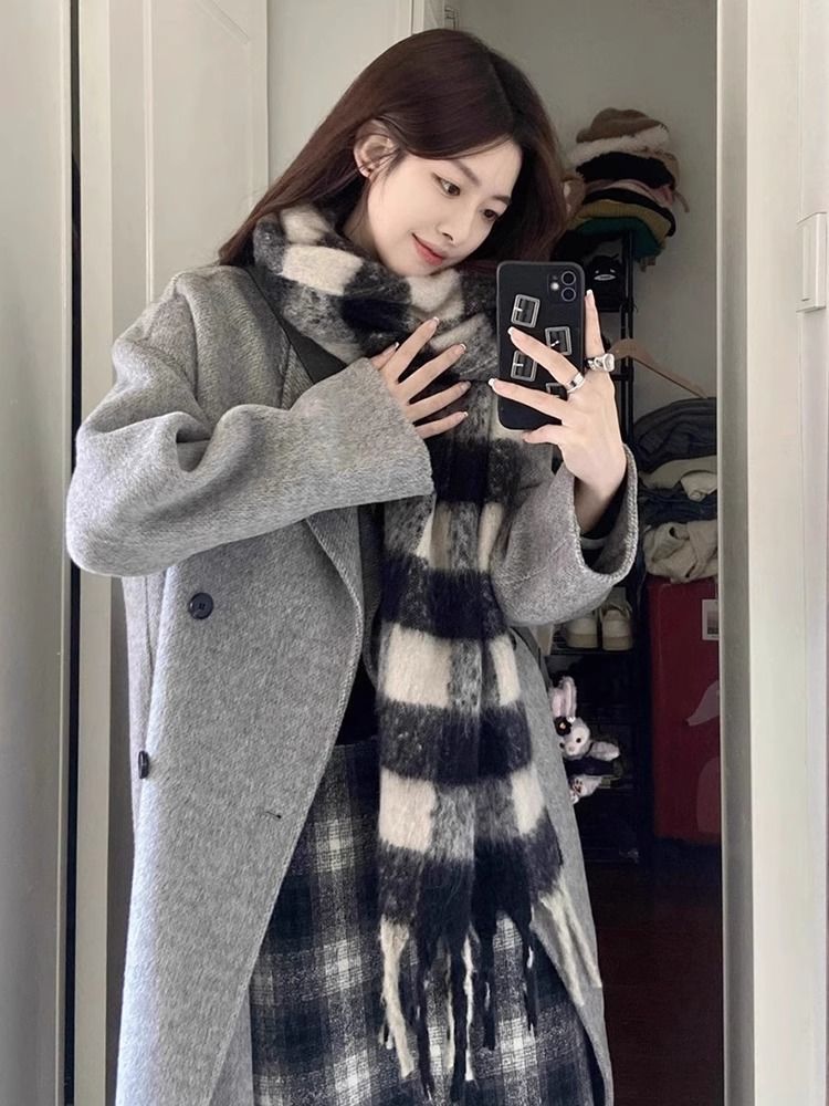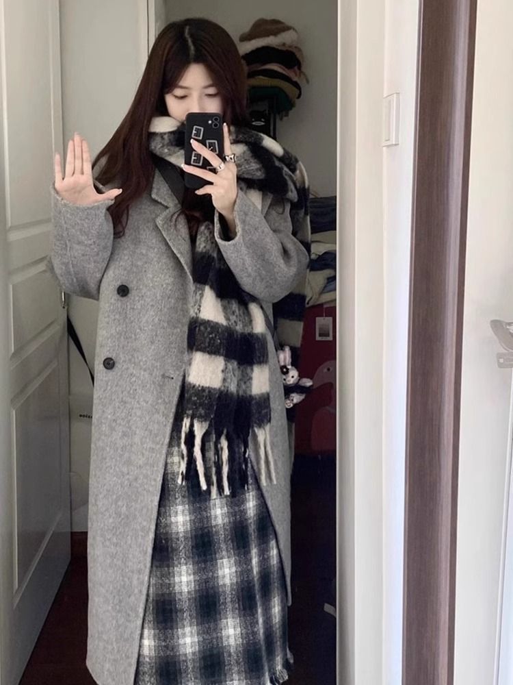 チェック柄ウールコート女性のための 2025 秋と冬の新しいメイラード韓国カジュアルスタイル厚いウールコートトレンディ