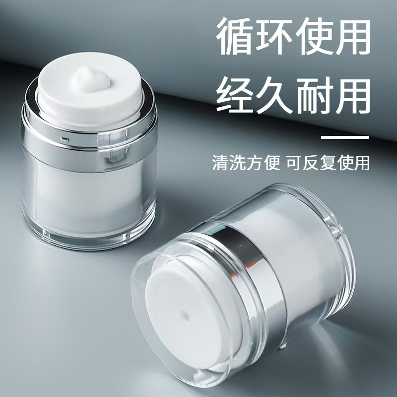 スポット 15ml50ml アクリルプッシュ式真空クリームボトル シルバーシルバーフェイスクリームローションフルカバーボトル