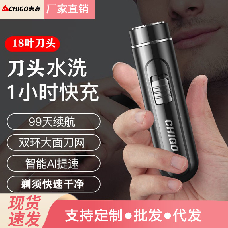 志高髭剃り男性電動髭剃りミニ携帯乾湿両用充電式水洗い髭剃り代発