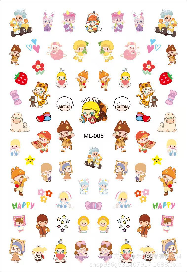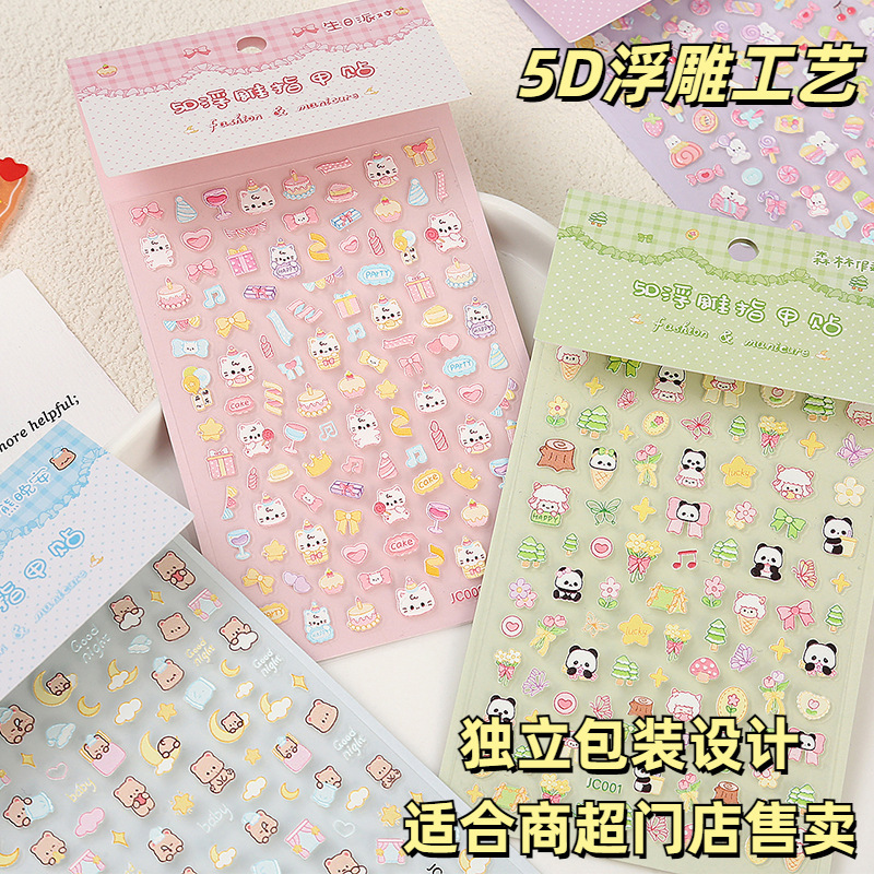 5D立体浮き彫り子供用クロミネイルステッカー、手帳用、女の子向け漫画デコレーション、防水ネイルステッカー、夜光