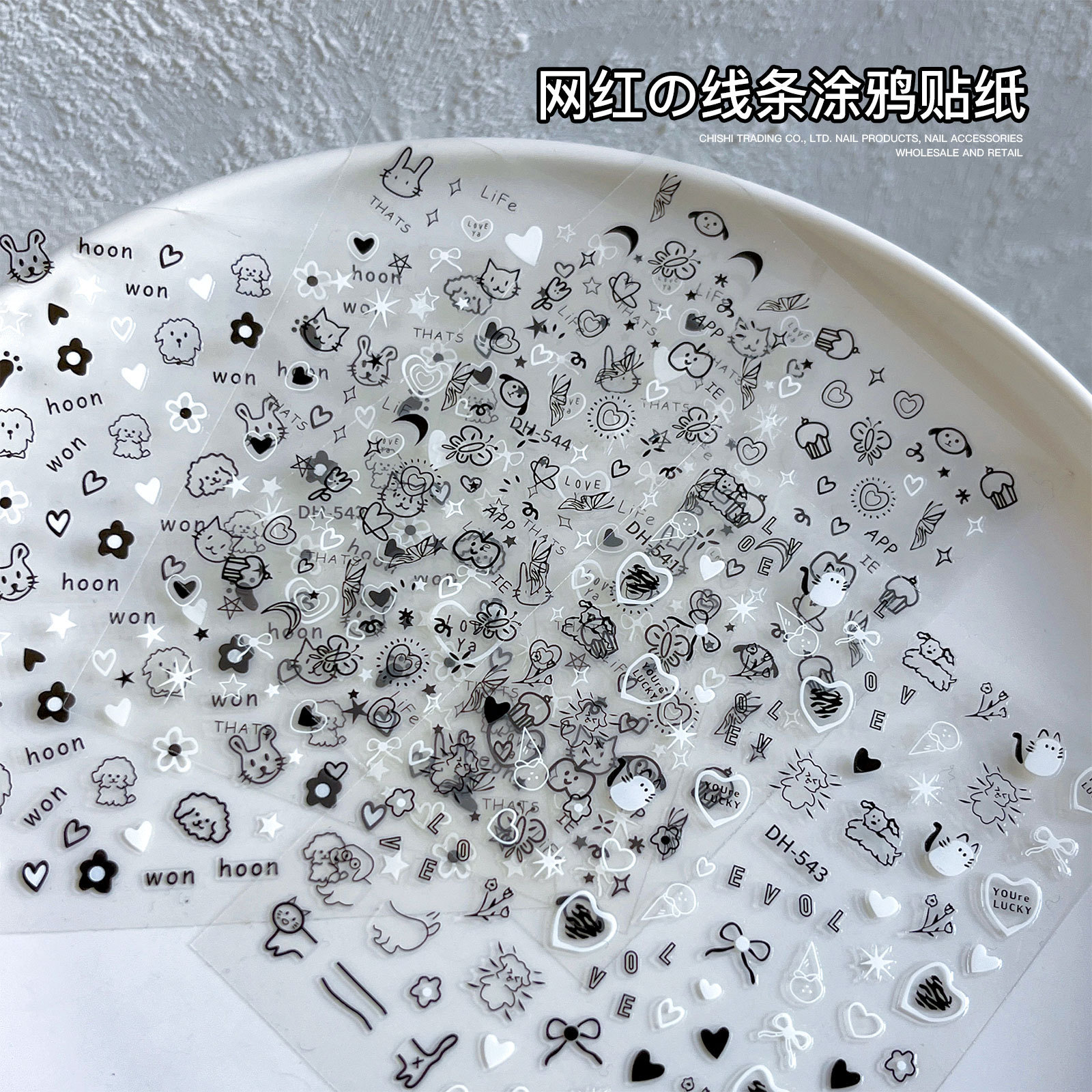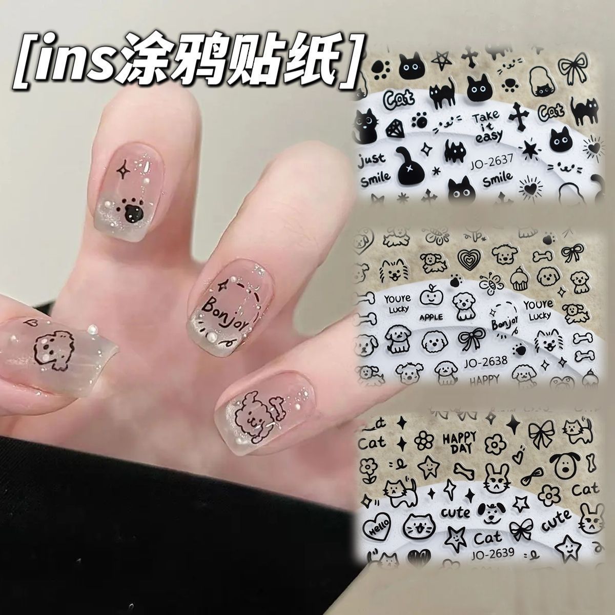 落書きラインネイルアートステッカーペット犬愛漫画装飾ステッカーイン甘いクール猫文字ネイルステッカー