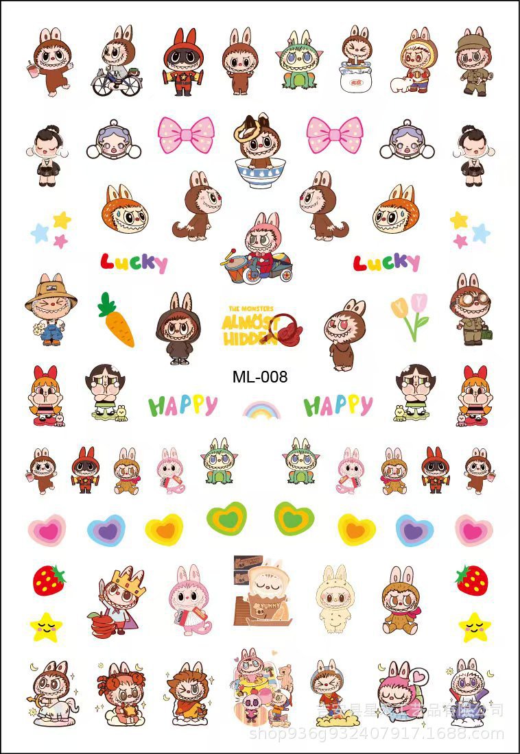 子供のかわいい漫画バニーネイルステッカープリンセスベビー防水ネイルアートデカール子供のおもちゃバニーステッカー