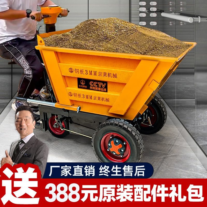 电动手推车翻斗建筑工地灰斗车三轮工具车搬运拉粪上料拉货运输车