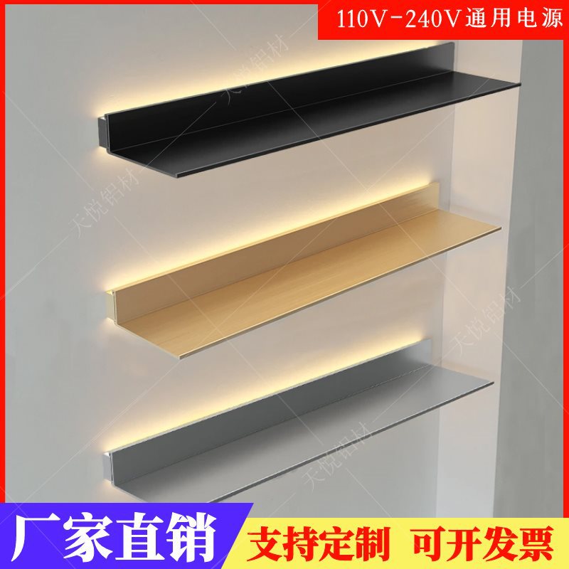 アルミ合金発光ラミネート壁棚 LED 照明シンプルなワインラック本棚壁掛け L 字型金属パーティション