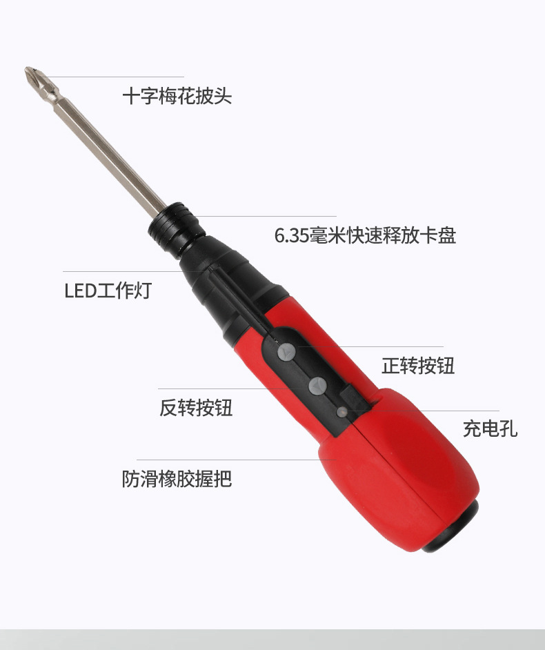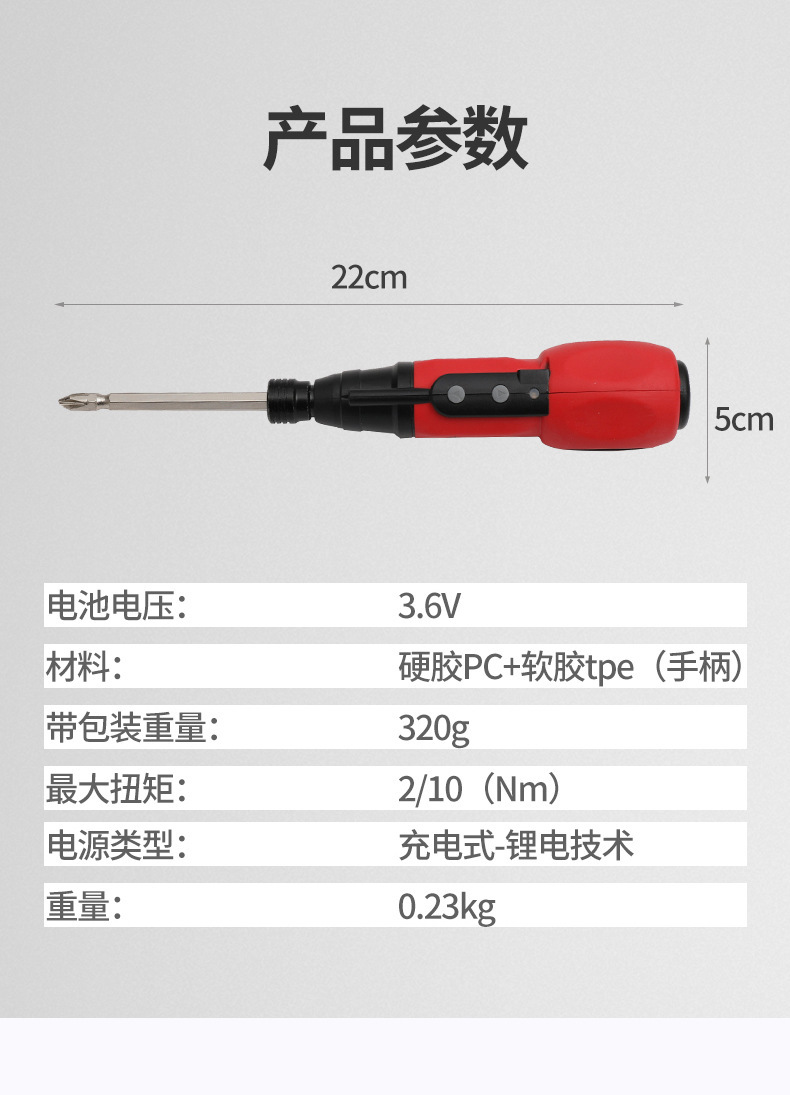 4.2v電動ドライバー三段調速照明灯付硬朗直柄3.6v電動ねじ取り子