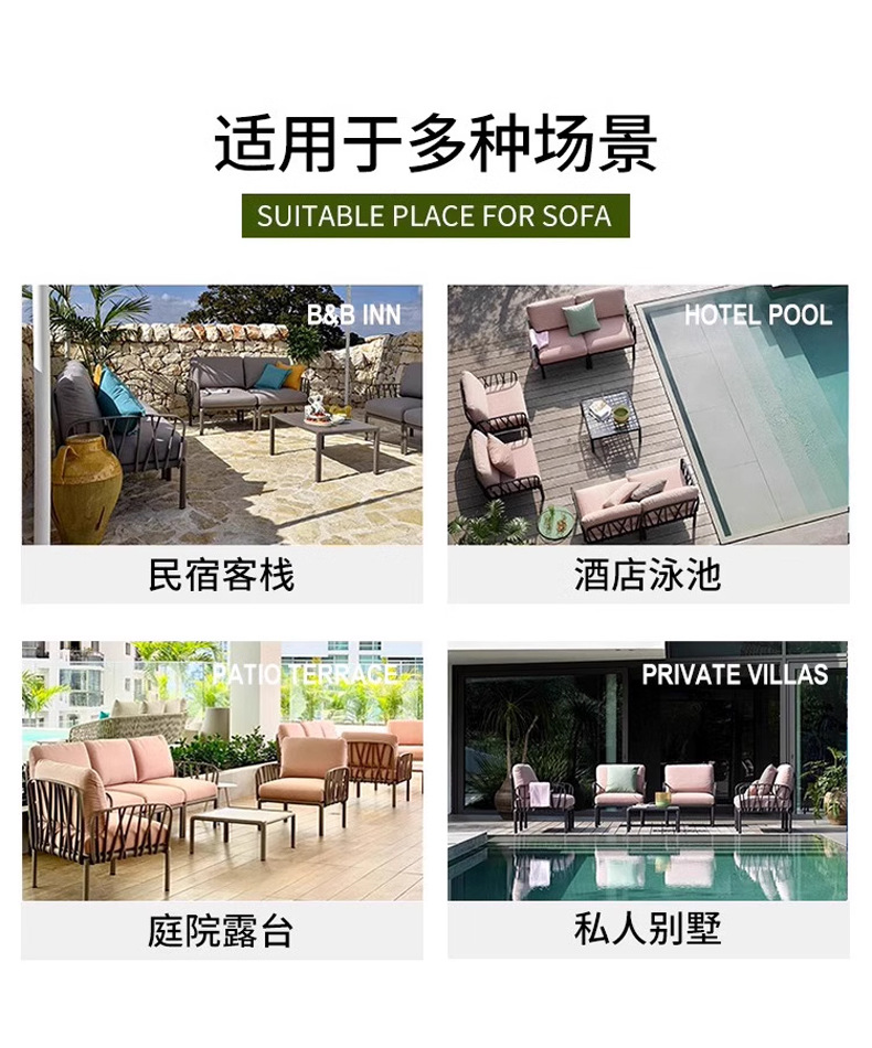 屋外ホテルテラスソファセットヴィラガーデンパティオソファ家具オープンエアコーナーソファレジャーソファ