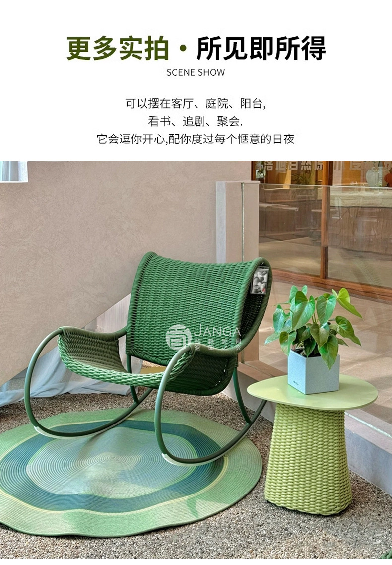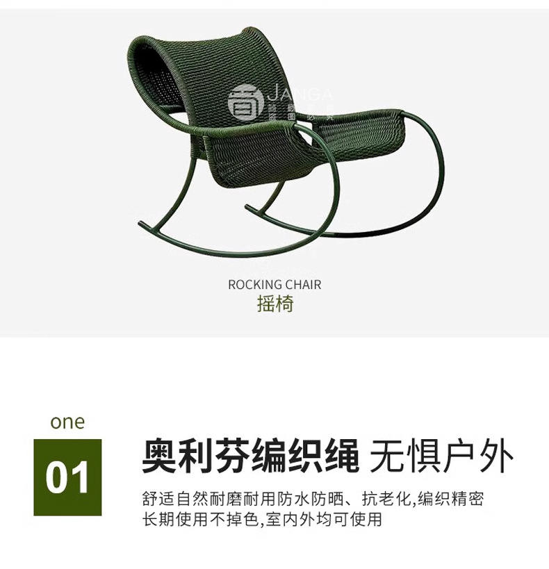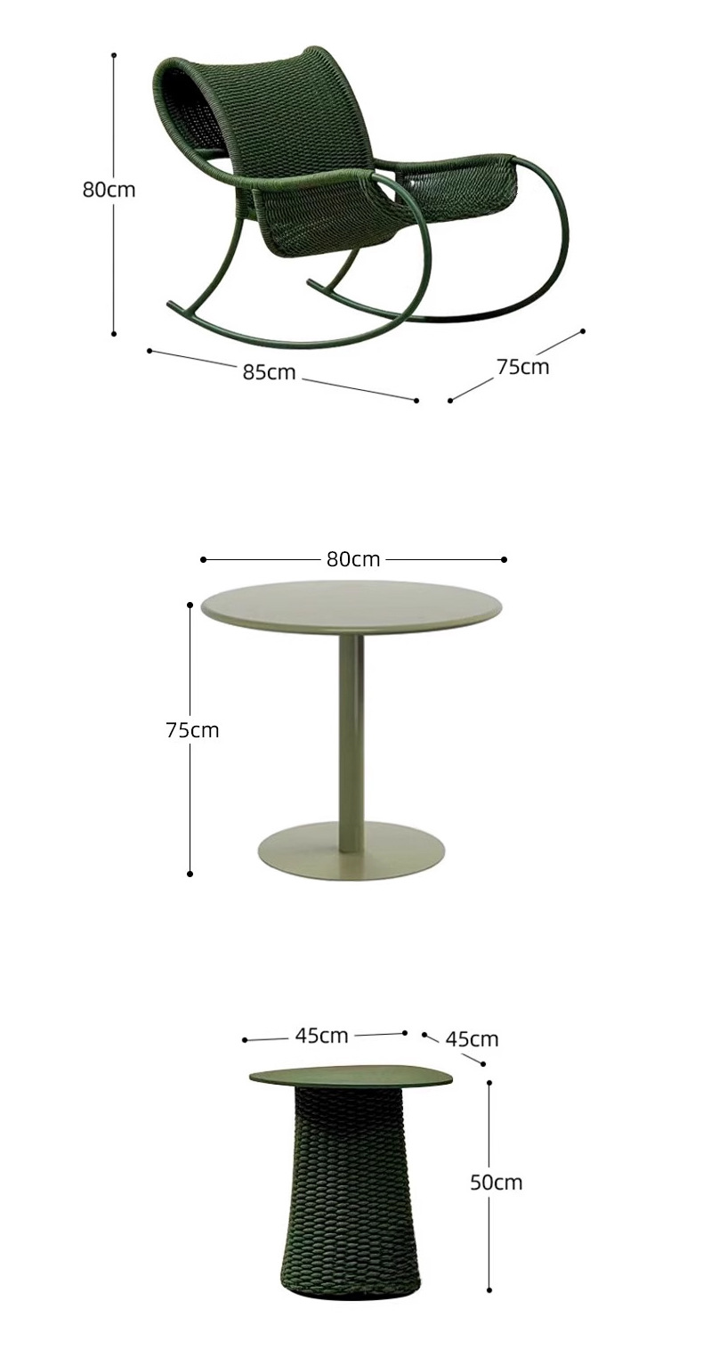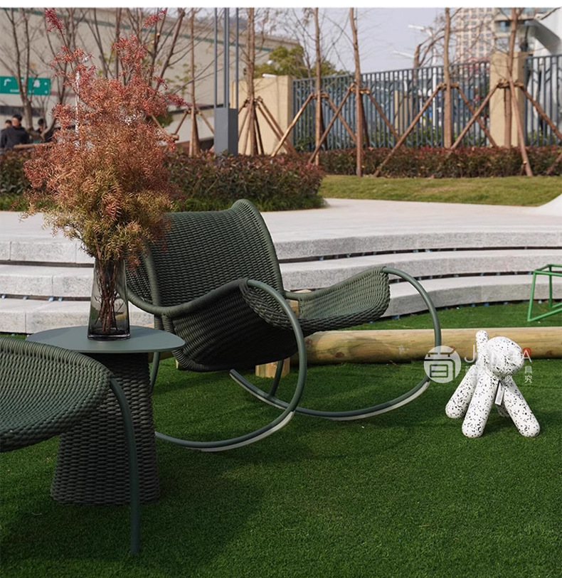 北欧のベランダのリクライニングチェアの屋外の露店の藤編みのテーブルと椅子のシンプルな現代の屋外の椅子のレジャーの庭の花園のロッキングチェア