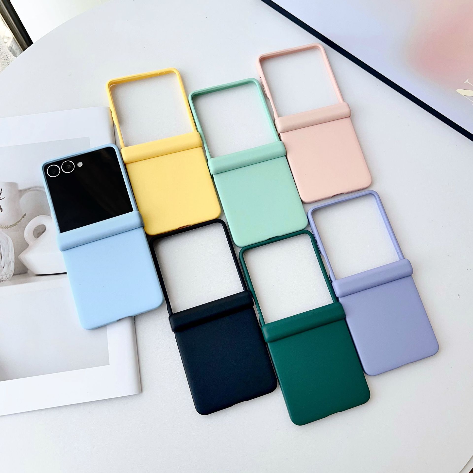 Galaxy zflip7 新型肌触り携帯電話ケース、新しいシンプルな肌触りソリッドカラー zflip6 (ボタン付き) に適しています。