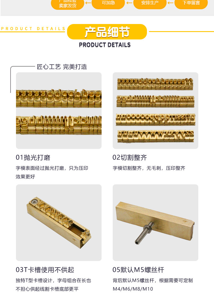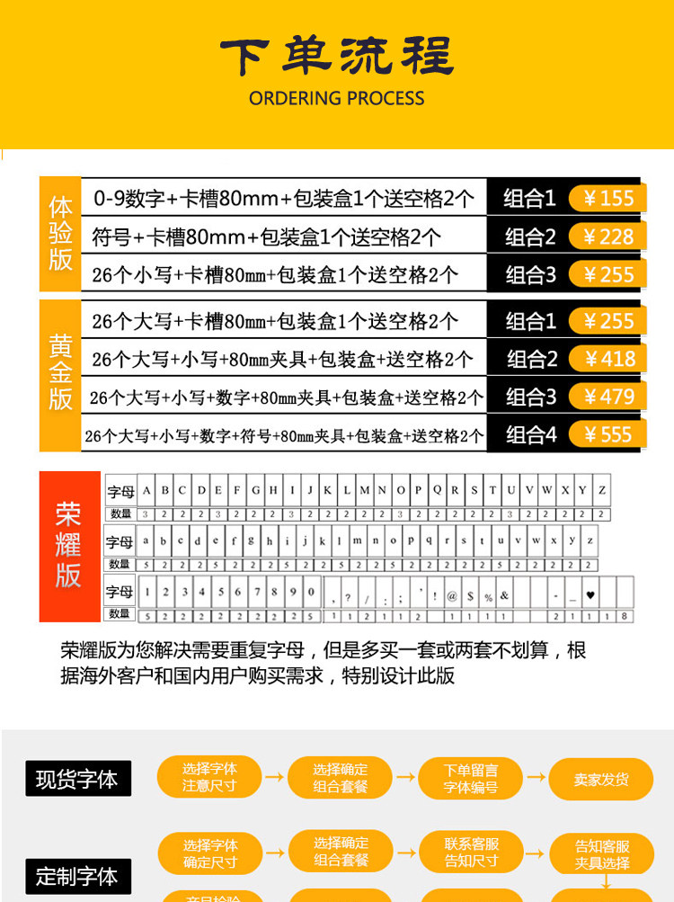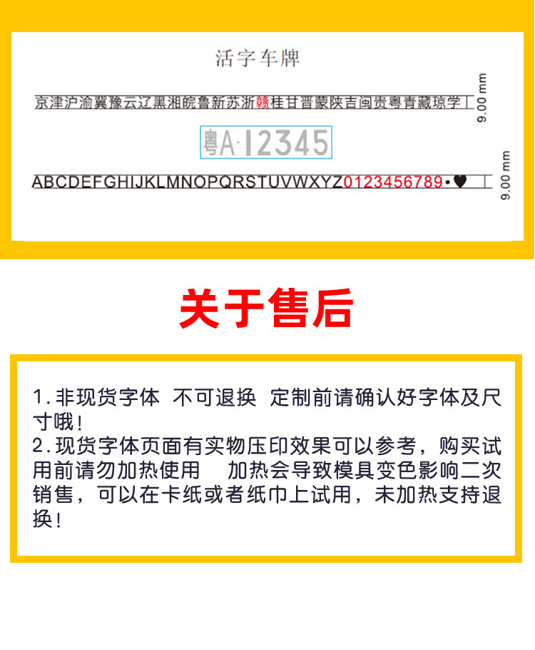 现货尺寸以大写A为准高度6mm, 其它字体按比例 ,可定制任意大小尺寸。