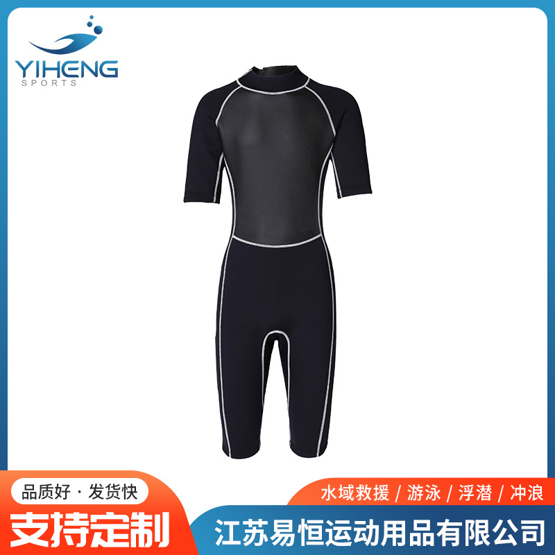 黒色分体ウェットスーツ3mm厚さ分体半袖パンツ浮潜服日焼け止めサーフィン服後にジッパーを開けるウェットスーツ