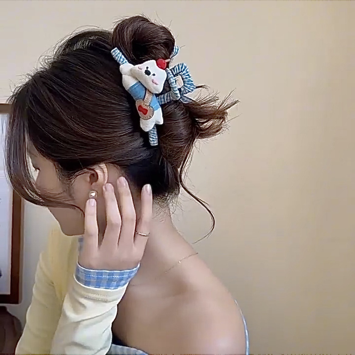 趣味背包玩偶卡通小狗蝴蝶结抓夹可爱发夹后脑勺高级感鲨鱼夹发饰
