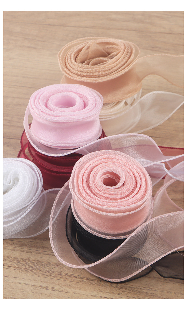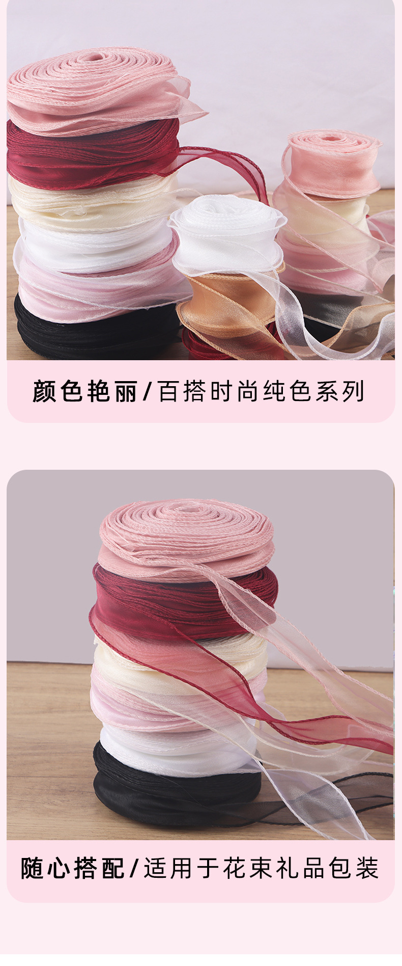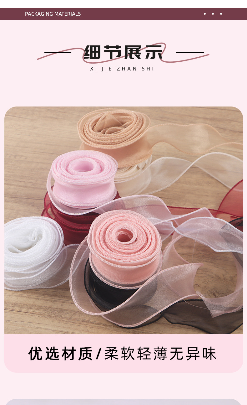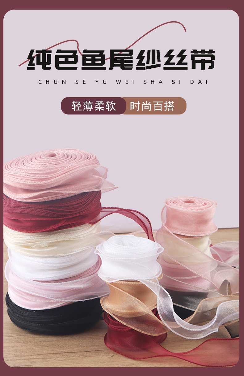 金边鱼尾纱丝带涤纶纱4cm蝴蝶结diy辅料织带花艺鲜花礼盒包装彩带