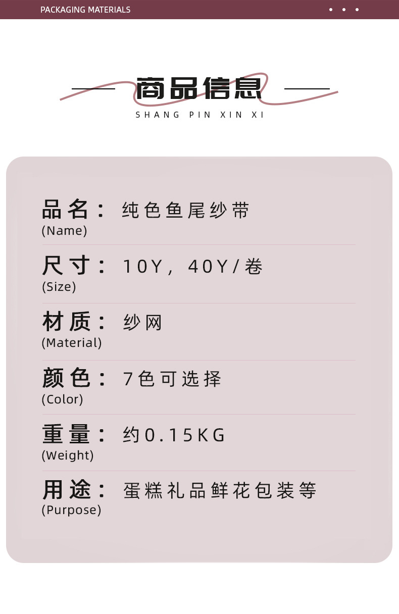 素色鱼尾丝带4CM花束鲜花烘焙包装装饰蝴蝶结织带手工花艺彩带