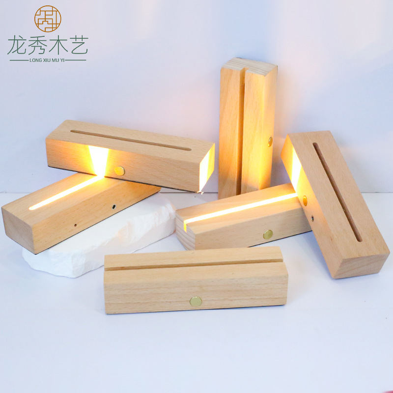 木の四角形の長い条の発光の台の木製のledの小さい夜の明かりの水晶のアクリルのdiy工芸品のデスクトップの置物