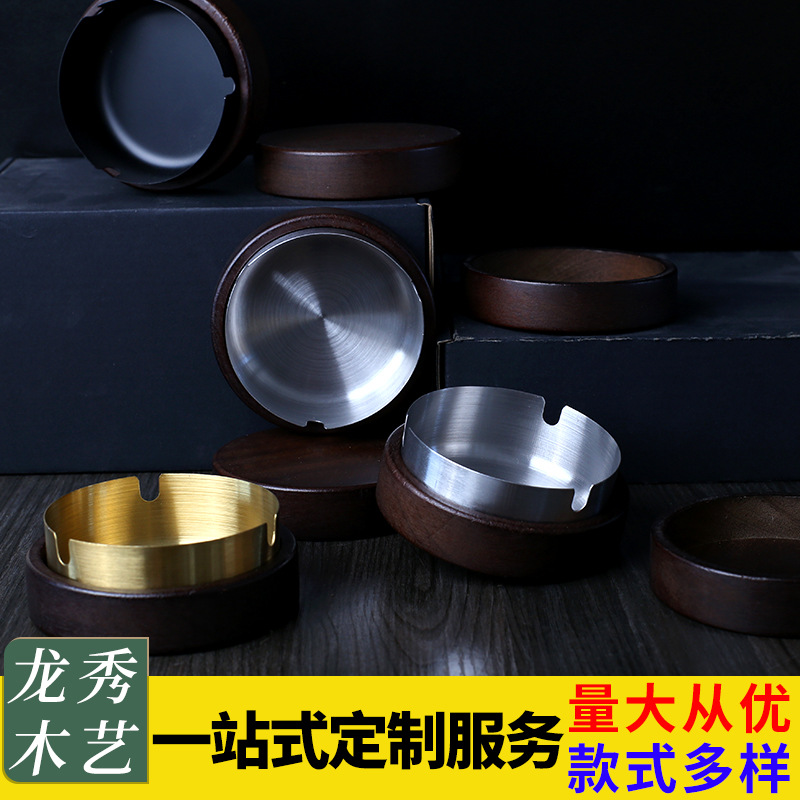 灰皿高颜値胡桃木実木家庭用客間高級オフィス蓋付き飛灰防止木製灰皿