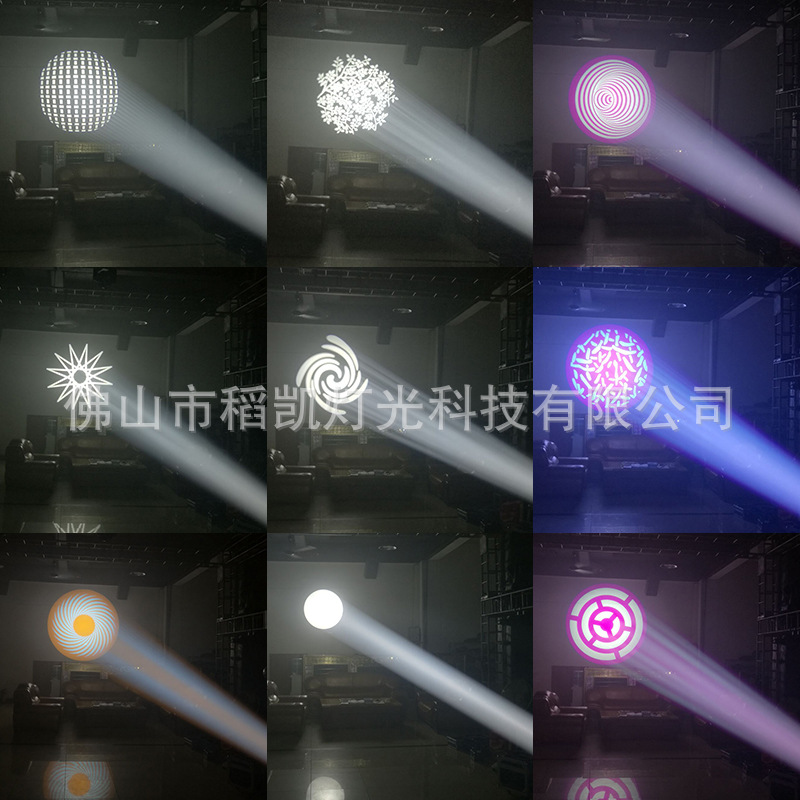 效果轮:旋转八面棱镜、线性六面棱镜,支持效果联动及雾化效果,图案可无限缩放