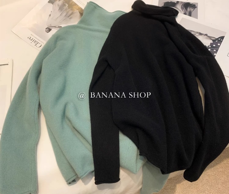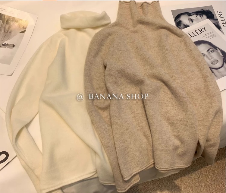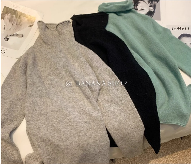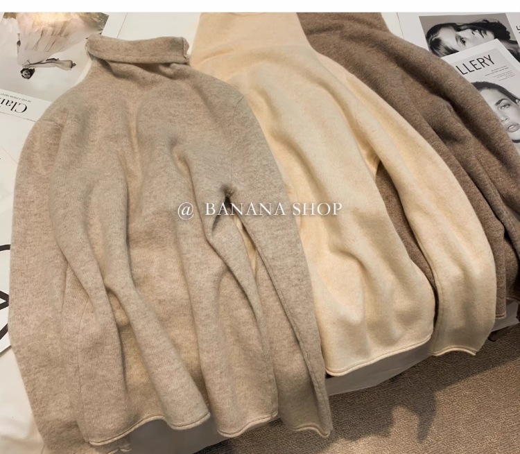 100% ボールフリーのカシミアセーター、女性用ハイネック秋冬セーター、パイルネック、ルーズニットウールボトムセーター