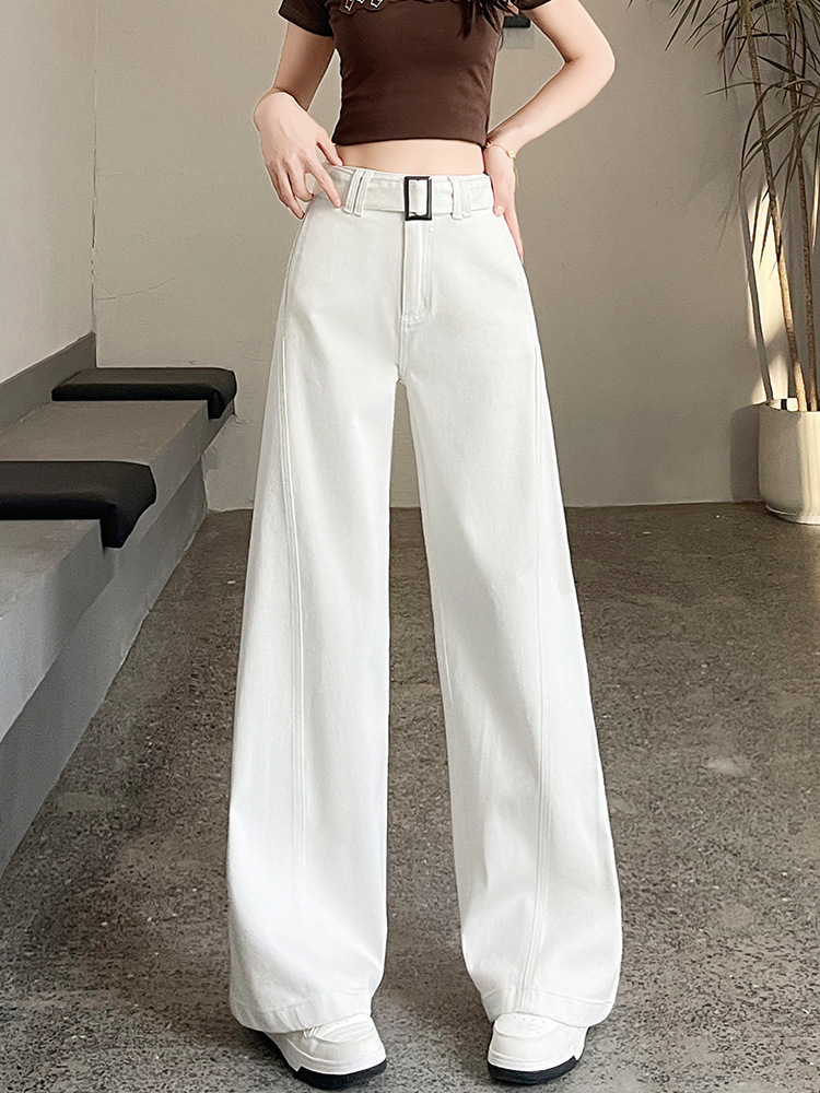 白色阔腿弯刀潮牛仔裤女2025夏薄款高腰弹力遮胯垂感直筒拖地裤子
