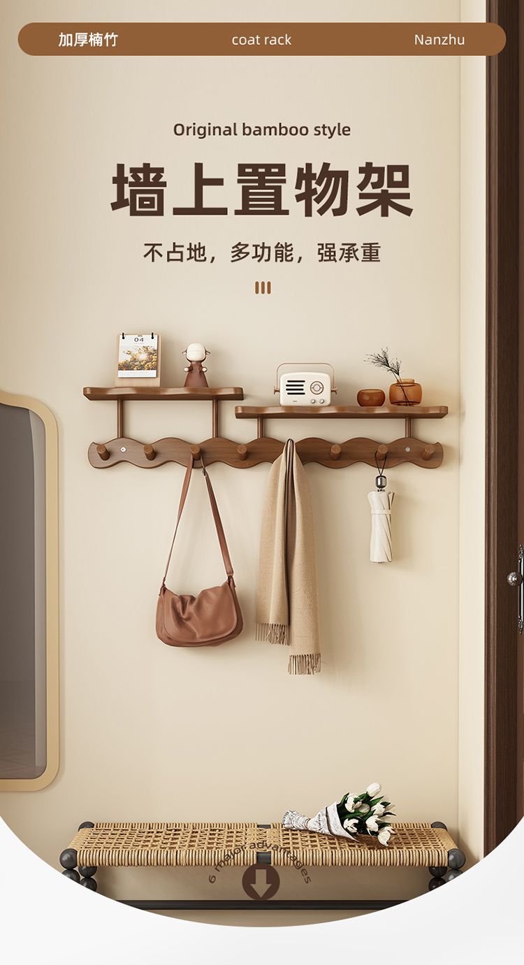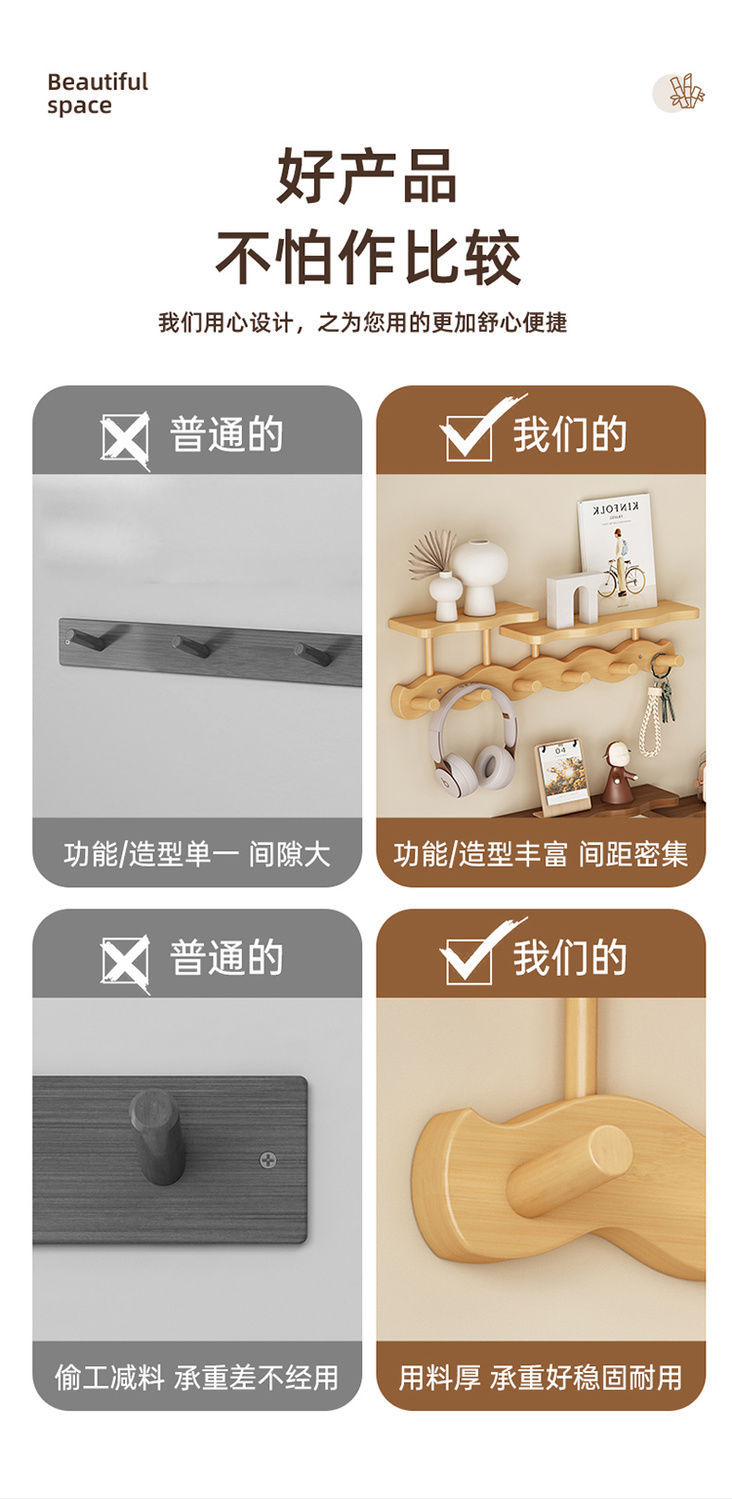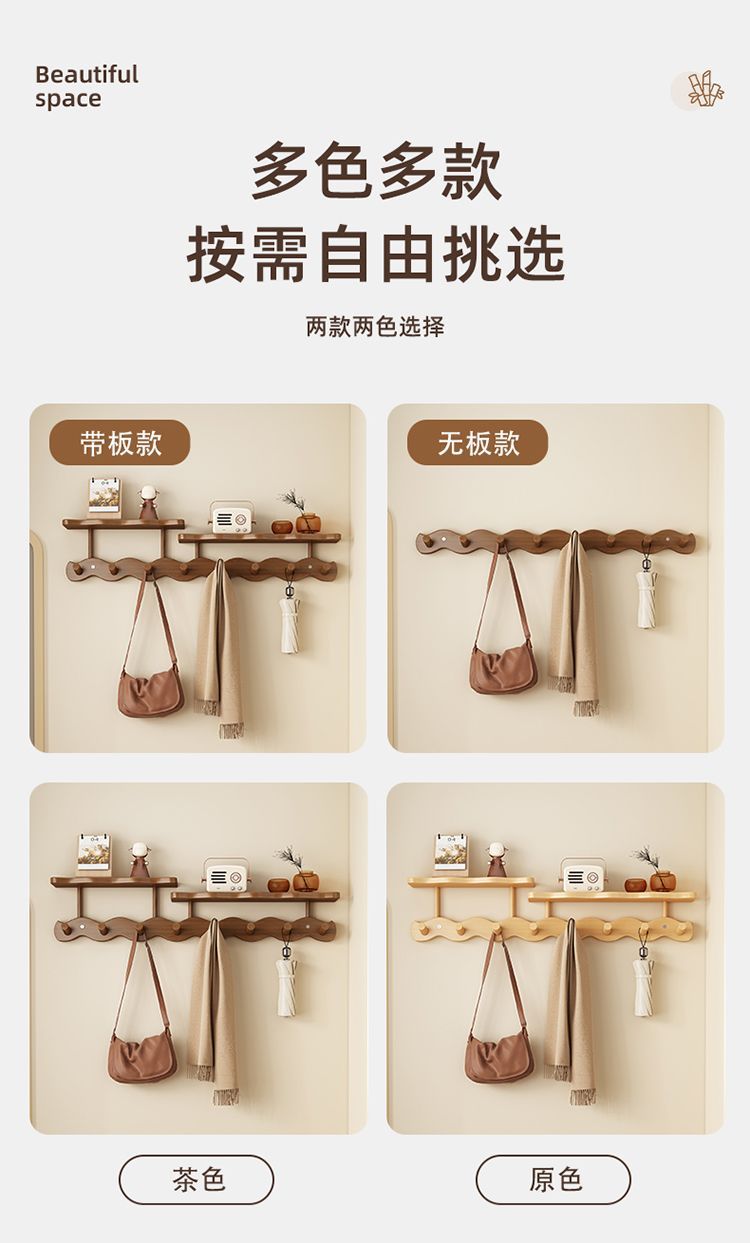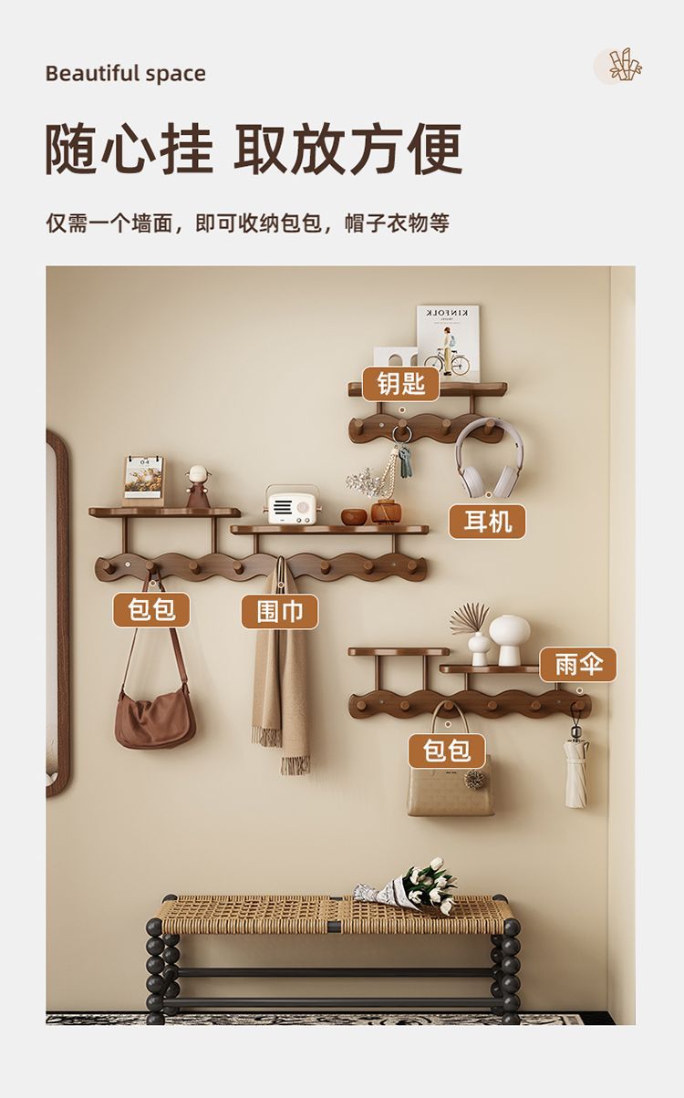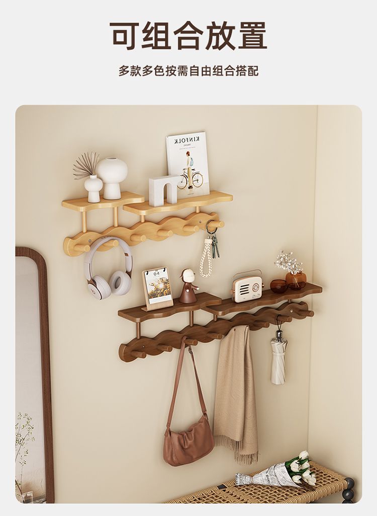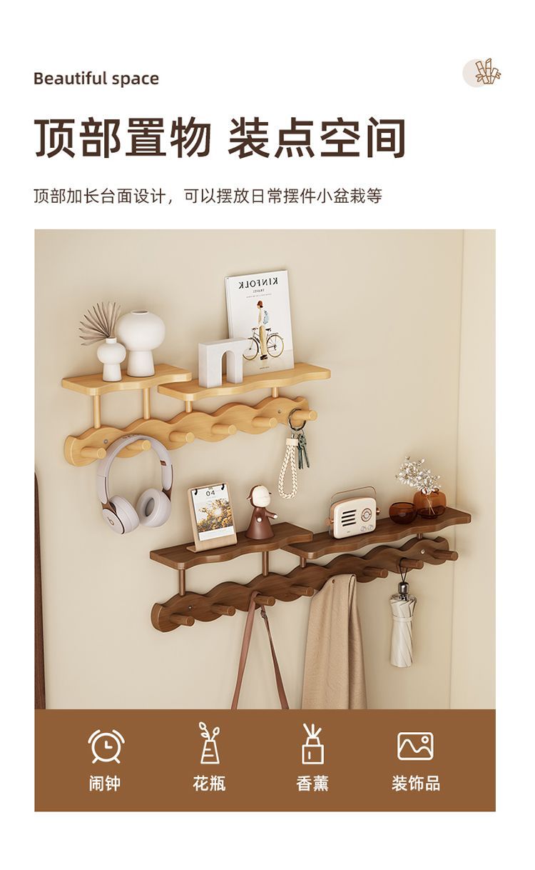 玄関ドアの壁掛け洋服ラック、玄関ドアの鍵とバッグの収納、洋服フック、寝室のドアの後ろの波型コートラック
