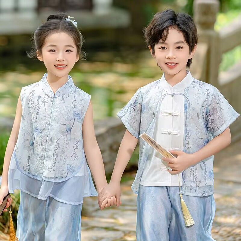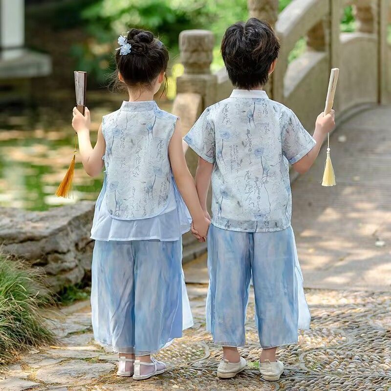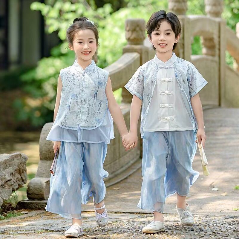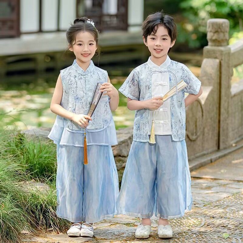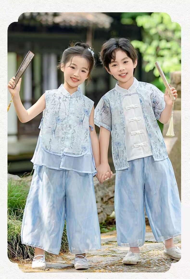 ガールズスーツトップ+パンツ,ボーイズスーツトップ+パンツ,ブルーのシングルパンツ