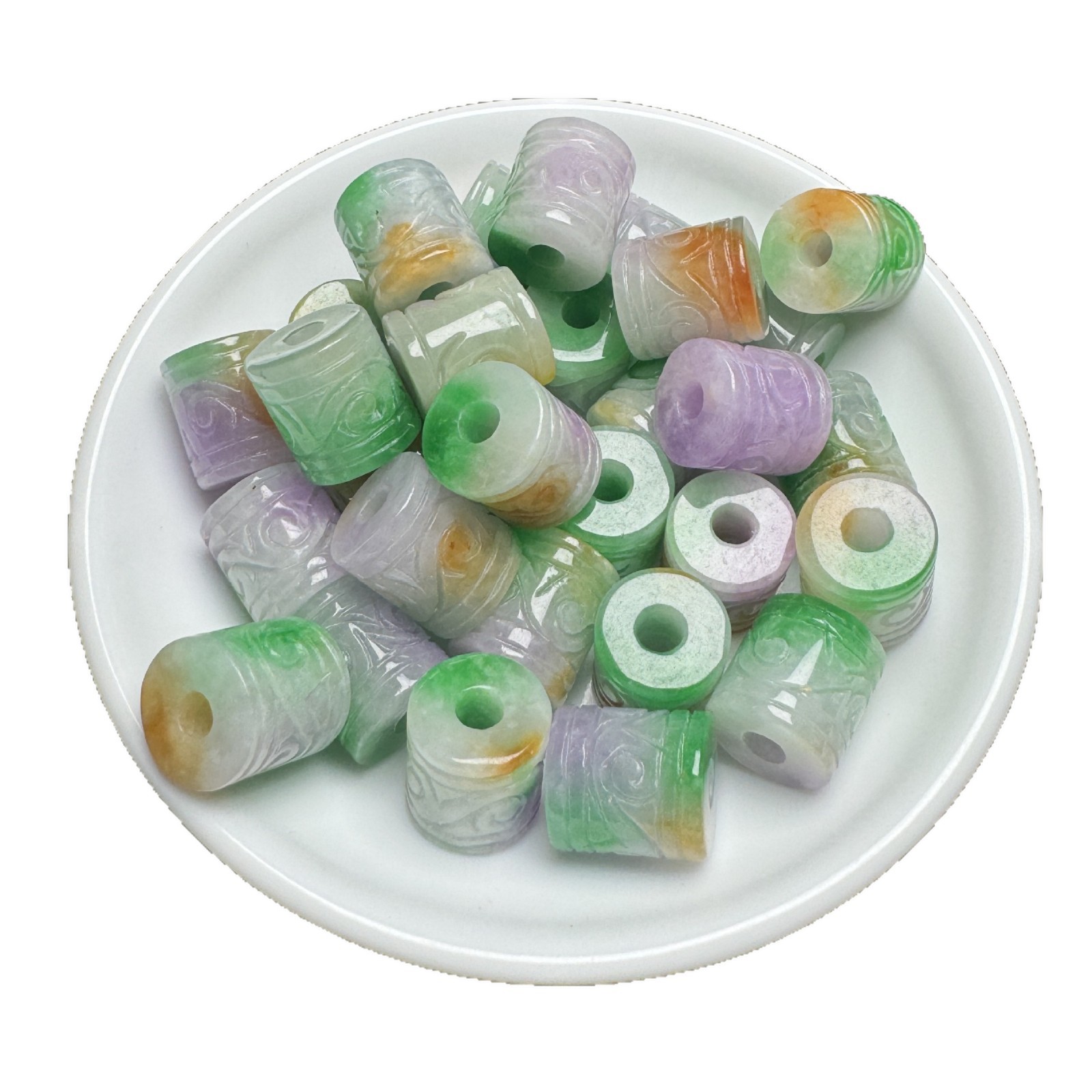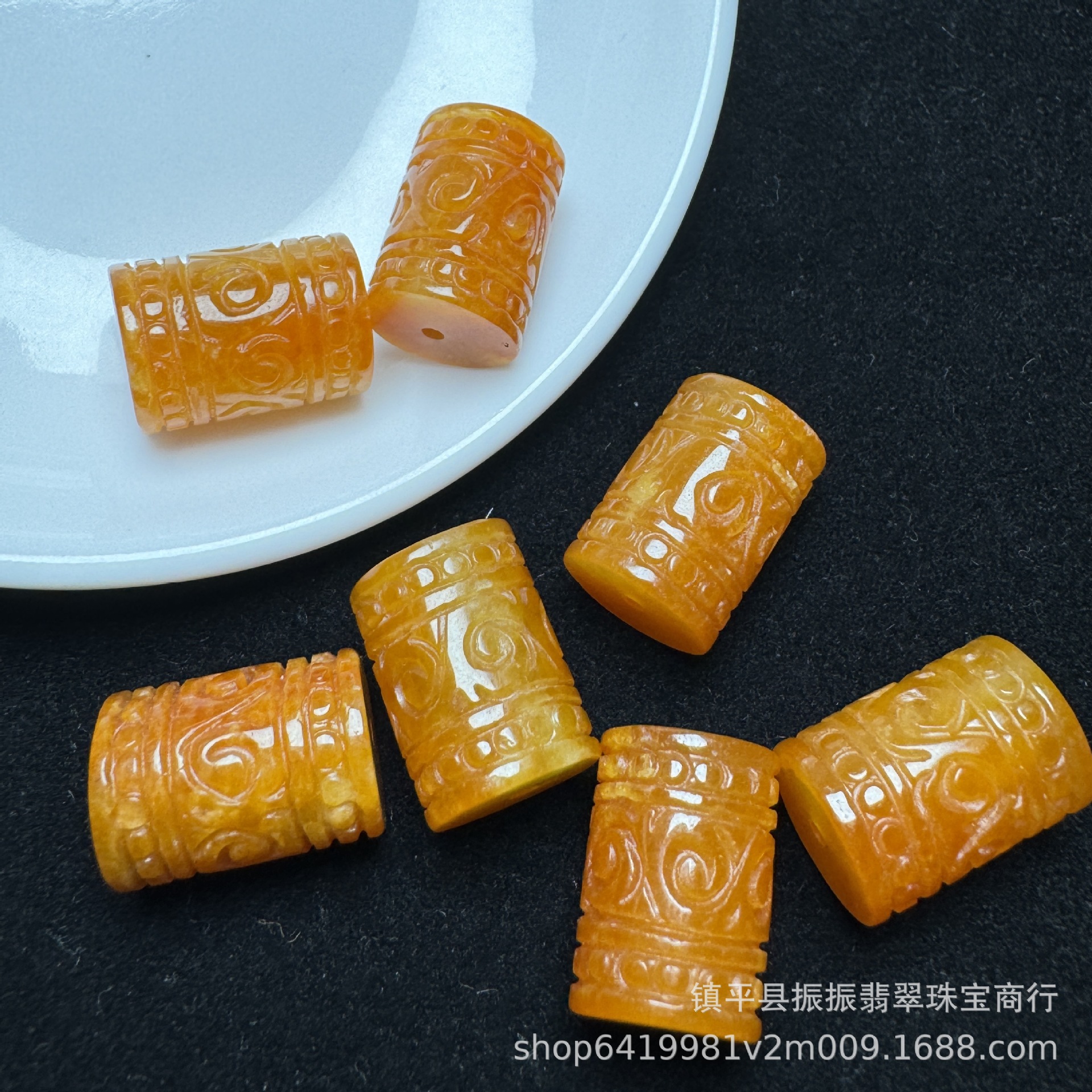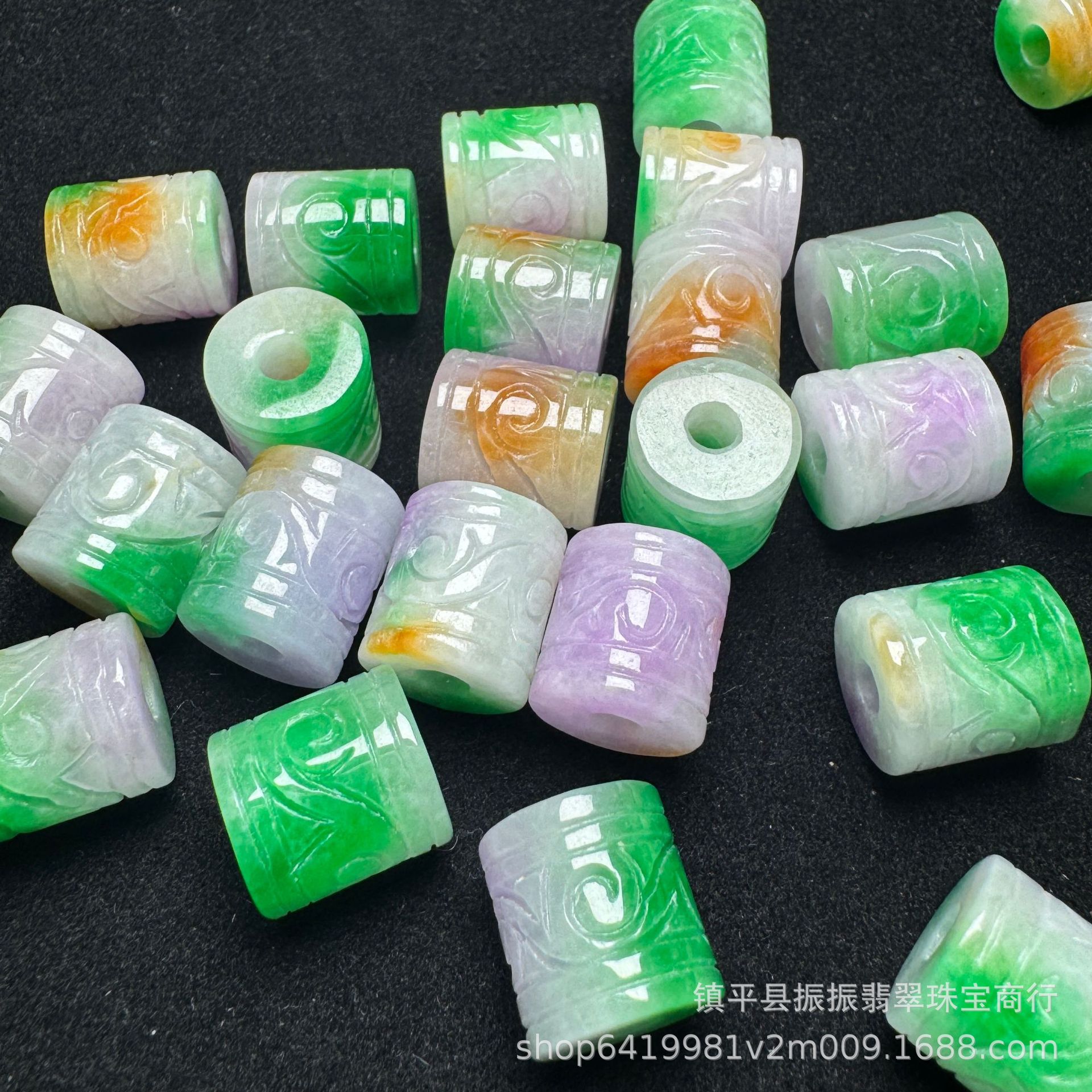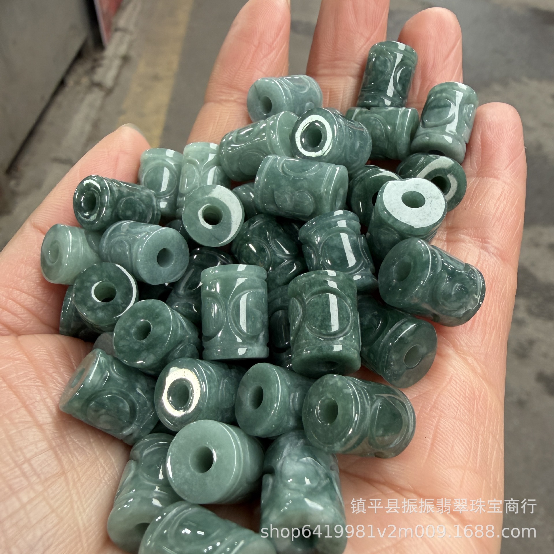 天然翡翠蓝水10×13mm雕花桶珠散珠批发 diy玉石饰品耳坠吊坠隔珠