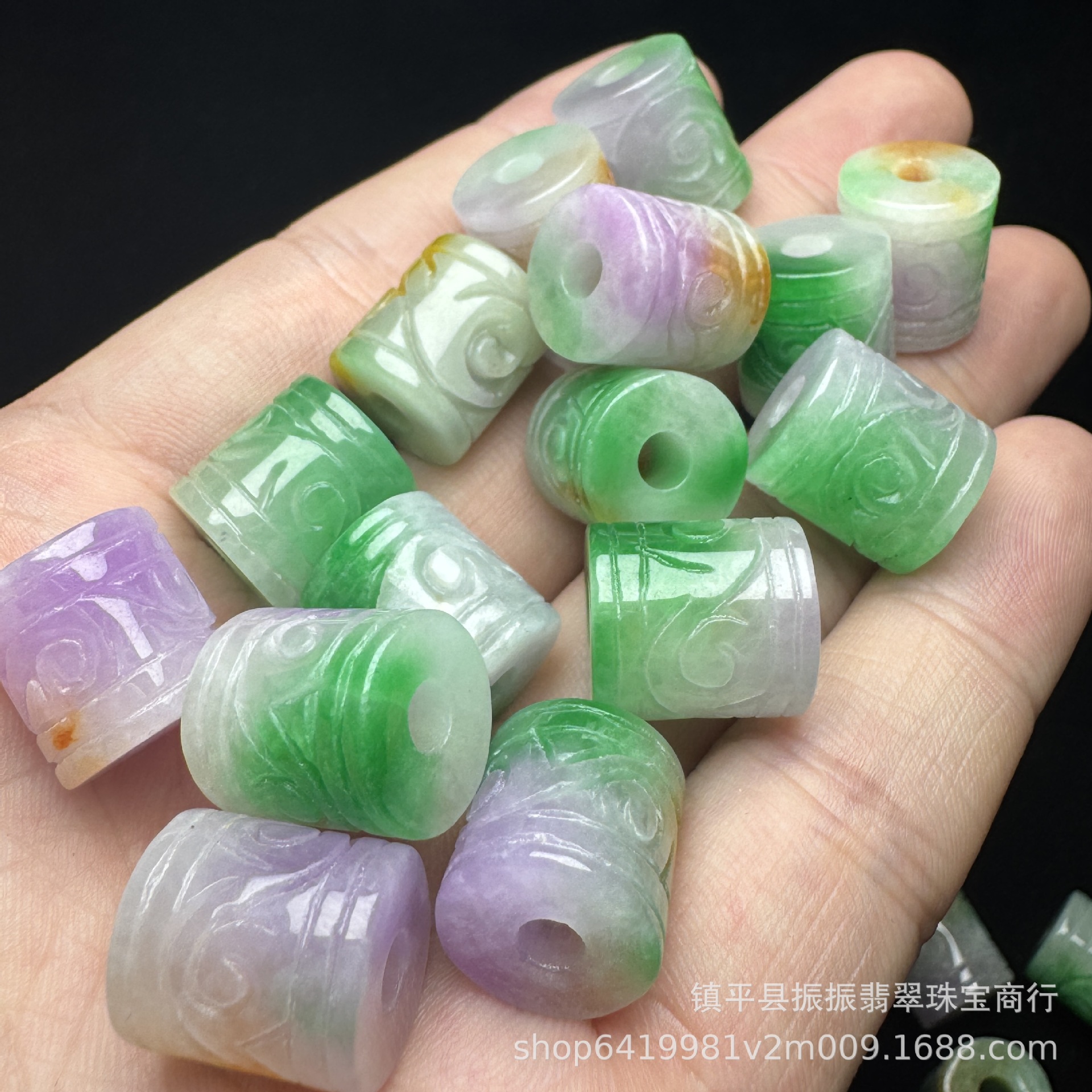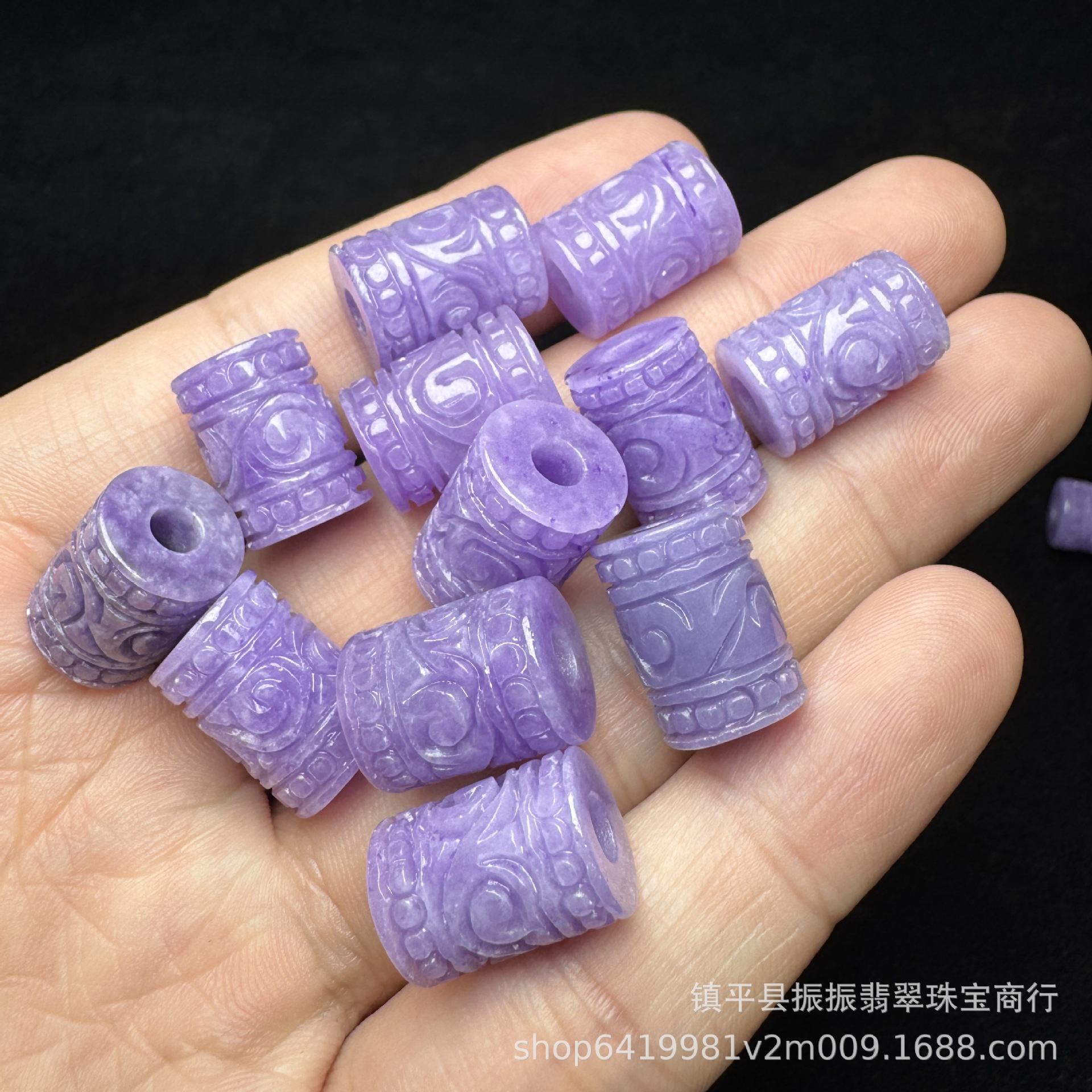 翡翠紫翡雕花15×11mm桶珠散件批发 diy玉石饰品小吊坠耳坠批发