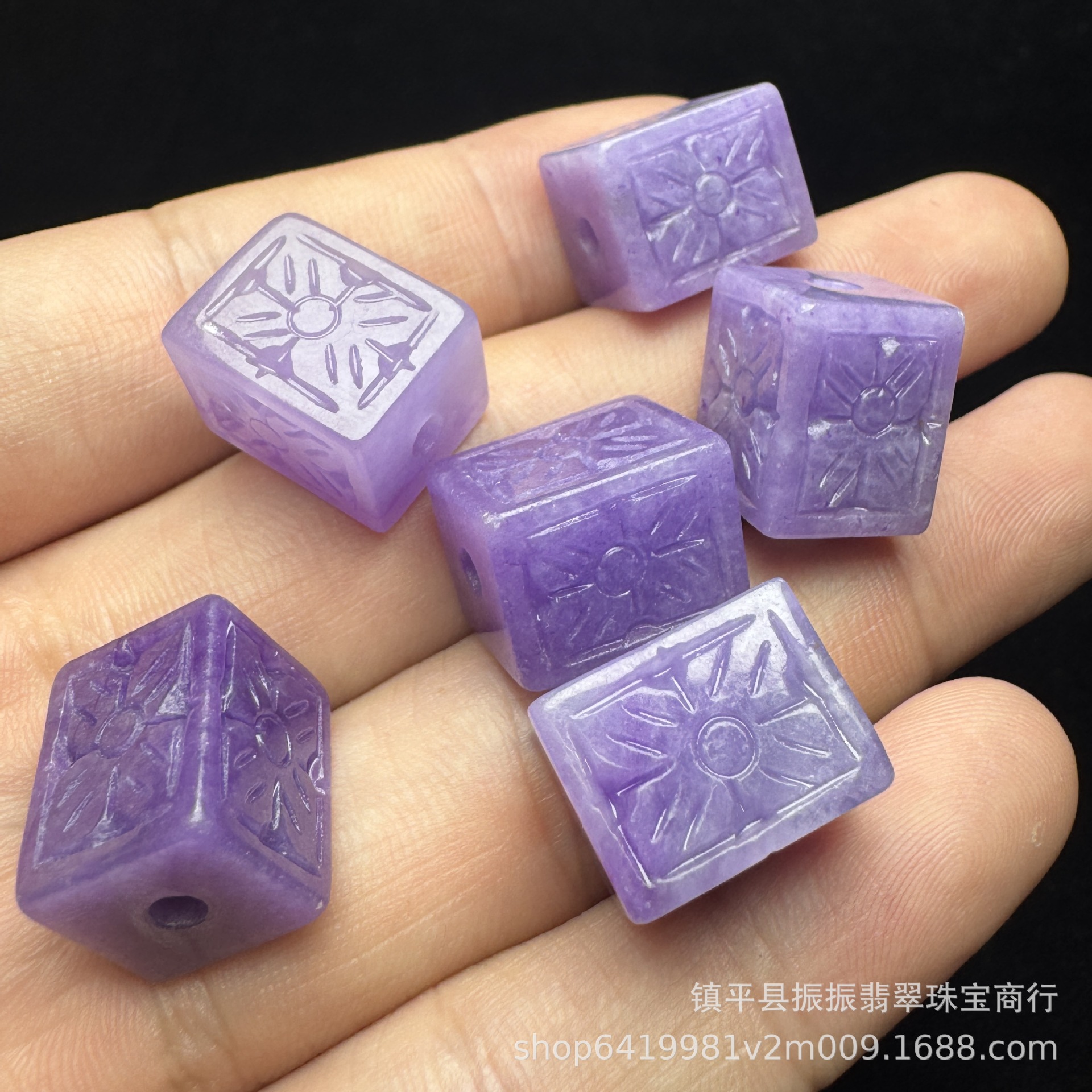 エメラルド紫翡翠彫刻正方形ルースビーズ卸売 diy 翡翠ジュエリーイヤリングペンダント衣類アクセサリー翡翠ビーズ