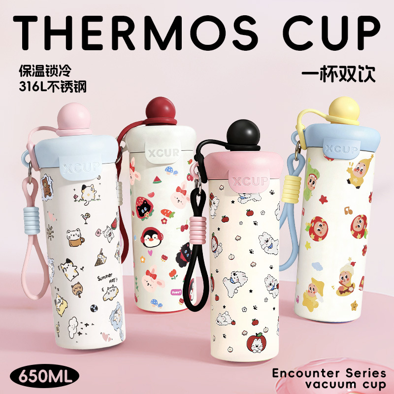キャリーロープ付き,大容量,車のカップ,ストロー付き,ストレートカップ,漫画