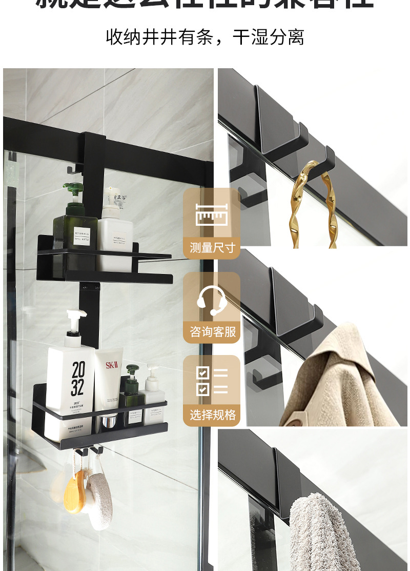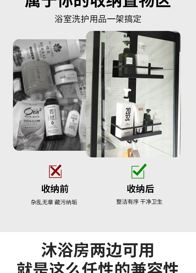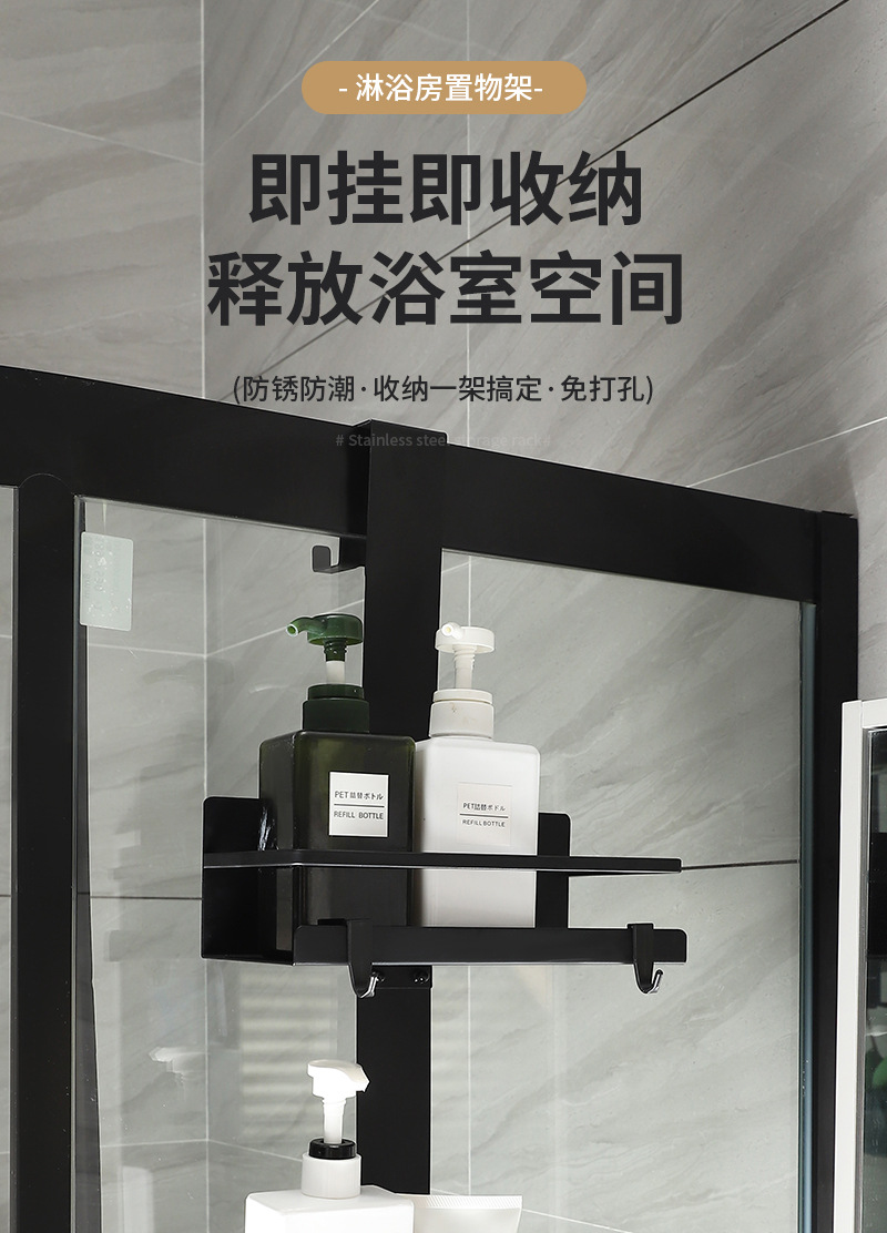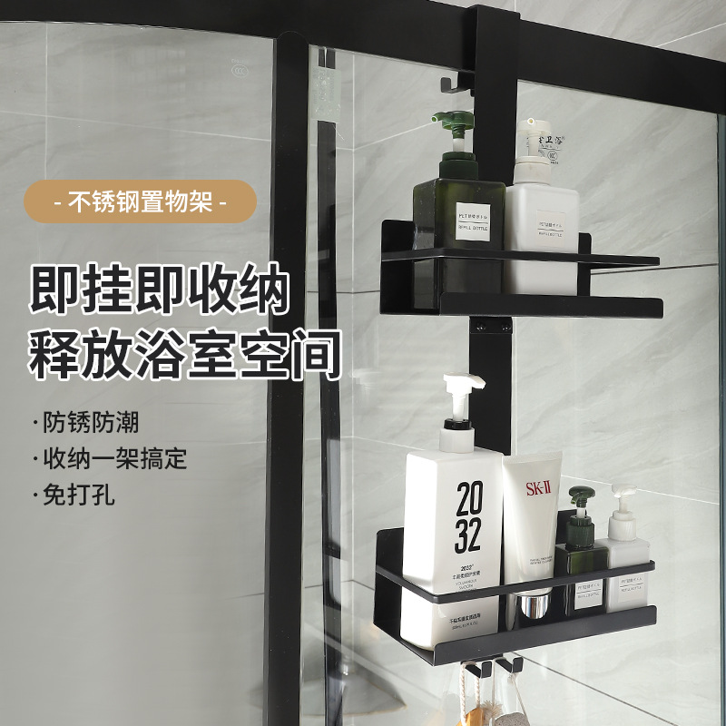 浴室置物架挂篮黑色淋浴房架子免打孔厕所收纳卫生间门后悬挂挂架