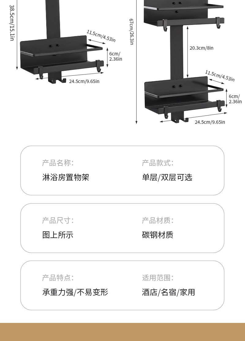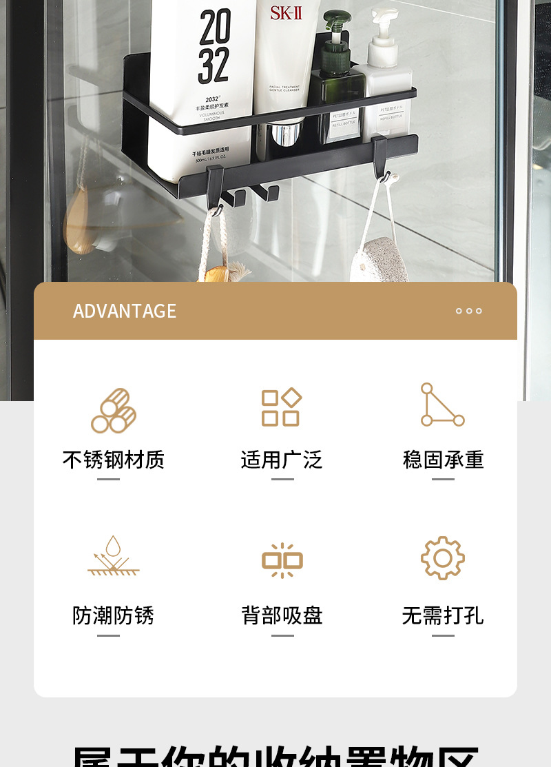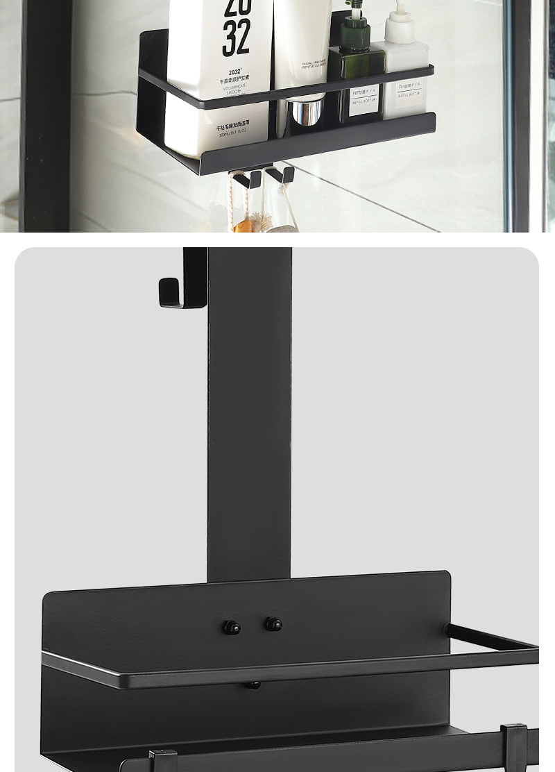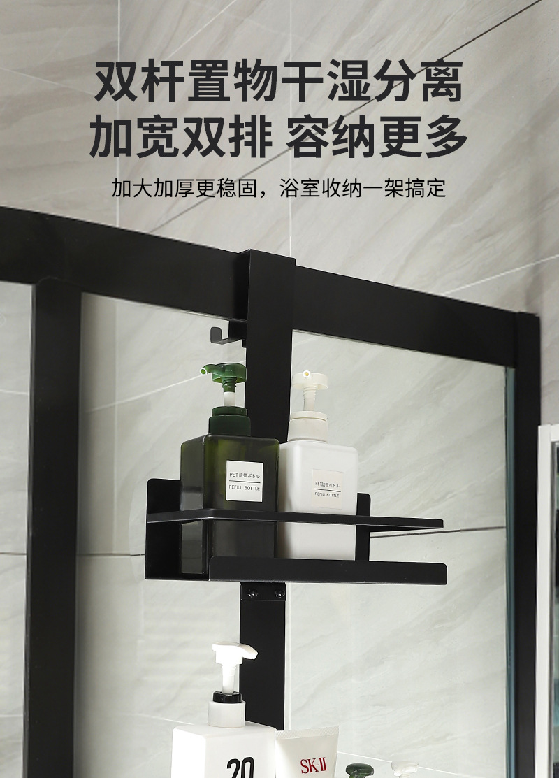 浴室置物架挂篮黑色淋浴房架子免打孔厕所收纳卫生间门后悬挂挂架