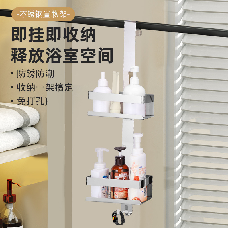 304ステンレス製浴室収納ラック、トイレ収納ラック、シャワールームガラスドア吊り下げラック、穴あけ不要吊り下げバスケット