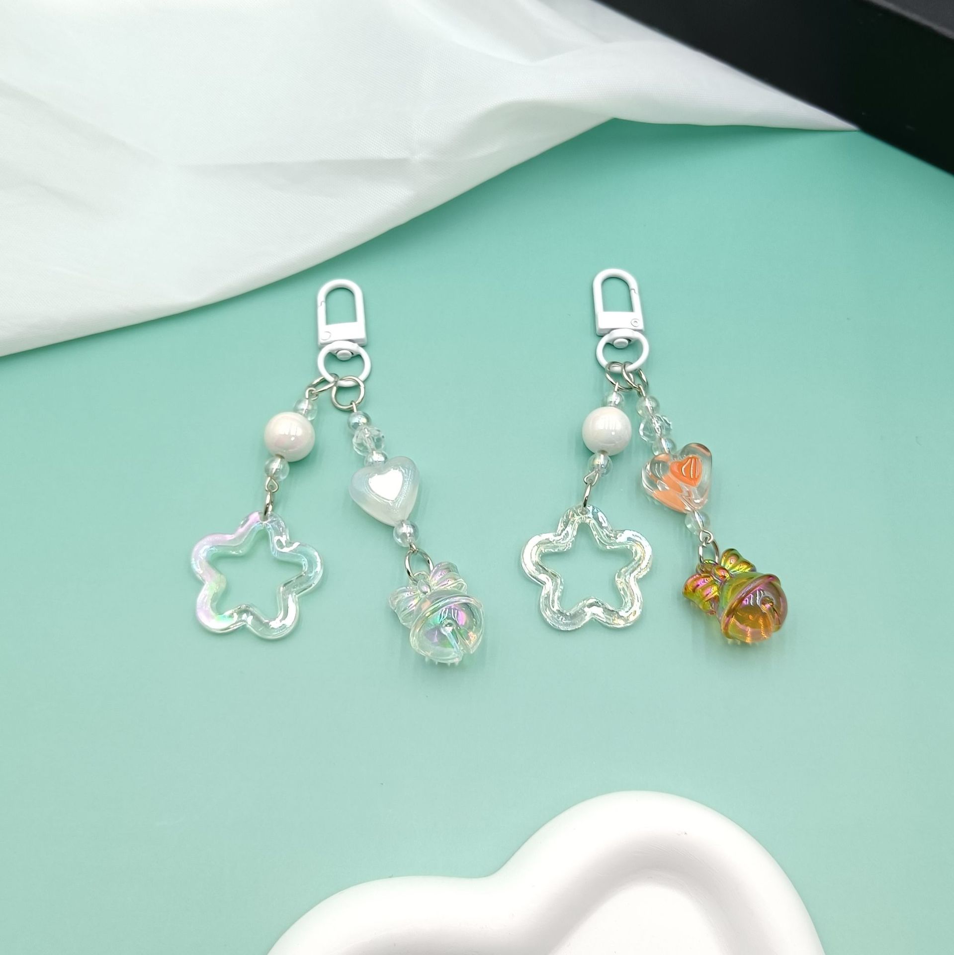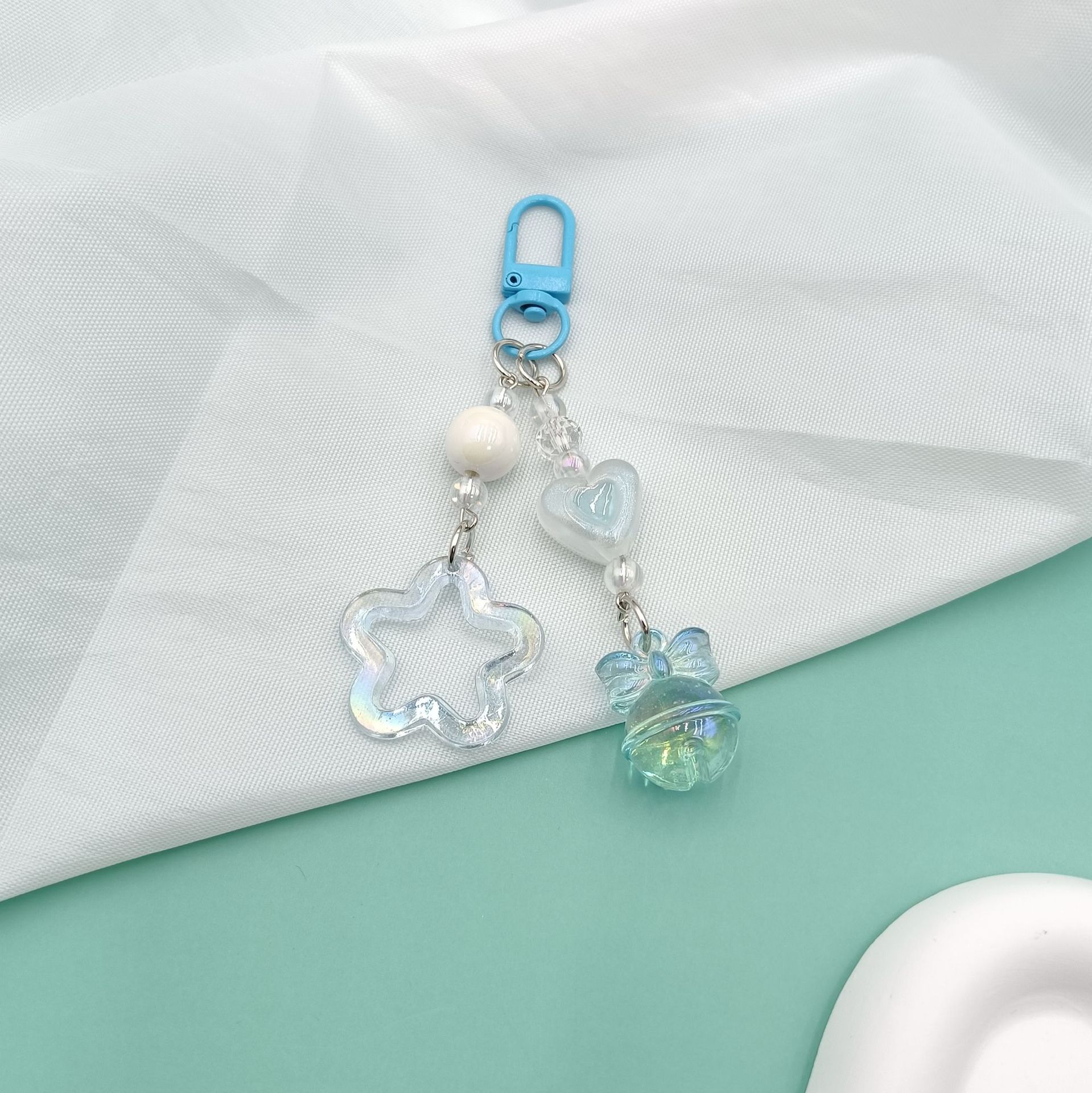新款闪粉镂空亚克力五角星汽车钥匙扣挂件奶油双色铃铛配件包配饰