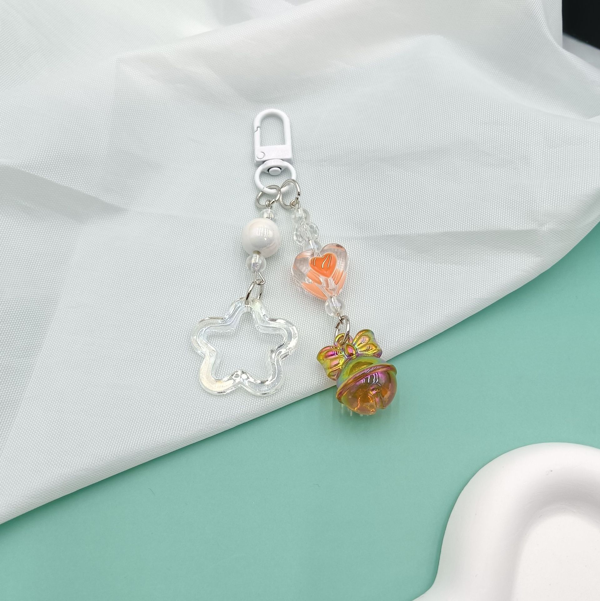 亚克力实色镀彩马贝钥匙扣挂件可爱蝴蝶花朵串珠配件新款包包装饰