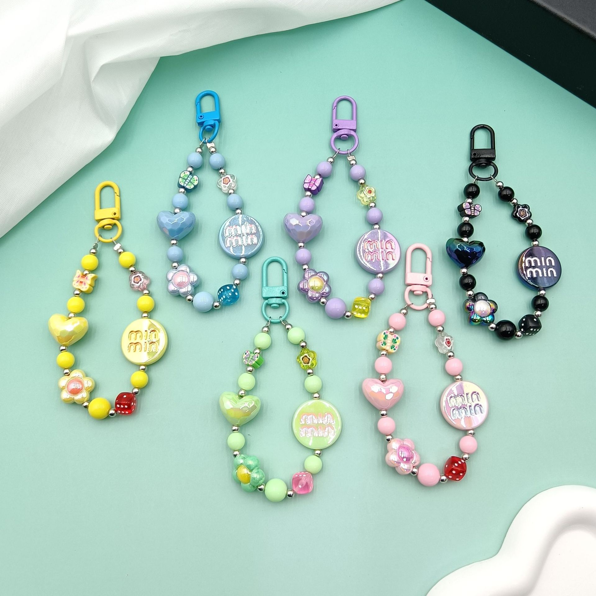 手绘珠串珠ins手机链防丢挂绳钥匙扣包包手机挂件diy公仔挂饰新款