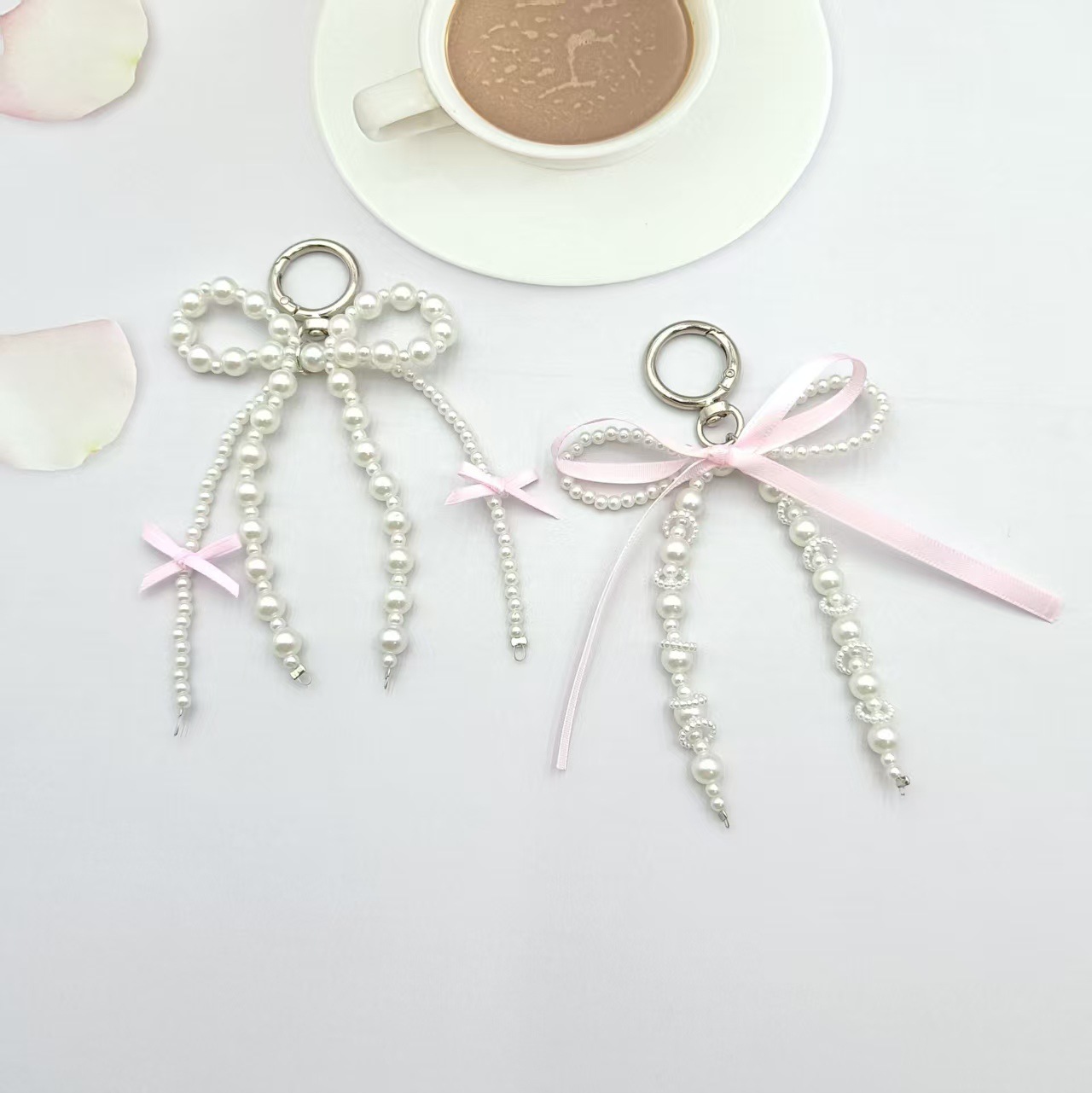 串珠珍珠丝带蝴蝶结吊坠超仙钥匙扣韩系ins风包包挂件韩式高级感