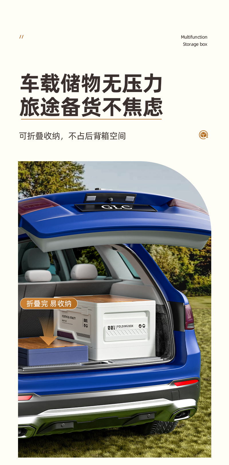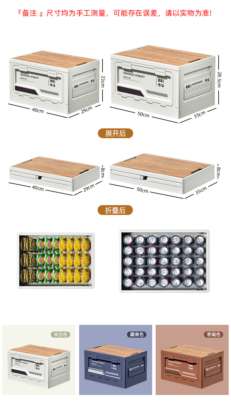 严选野营木盖折叠箱户外露营收纳箱侧开门车载后备箱储物箱收纳盒